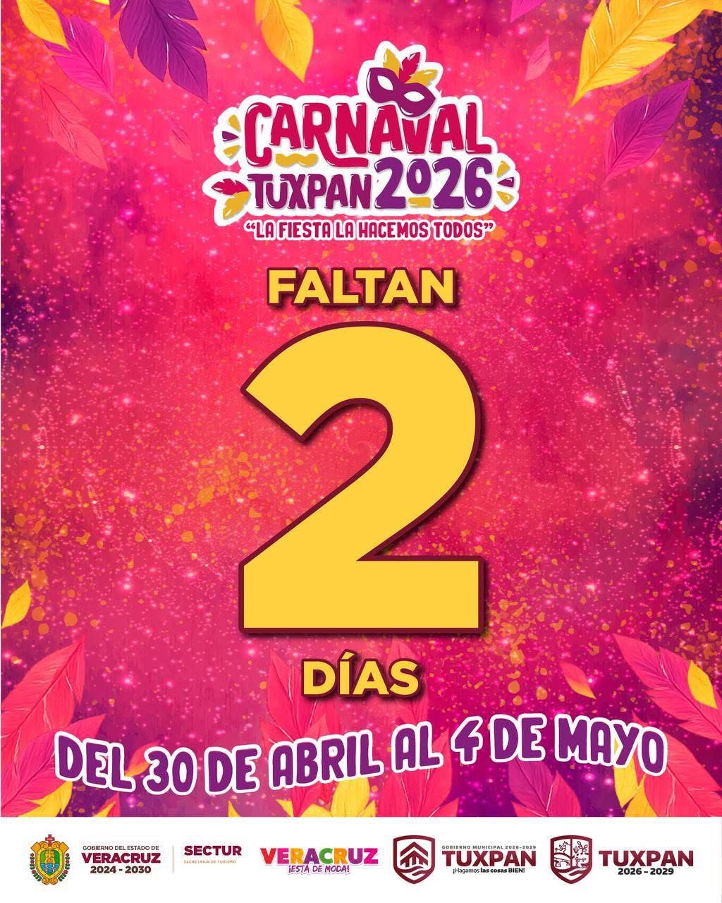 ¡Ya falta muy poco, estamos a 2 días! #CarnavalTuxpan2026 🎉