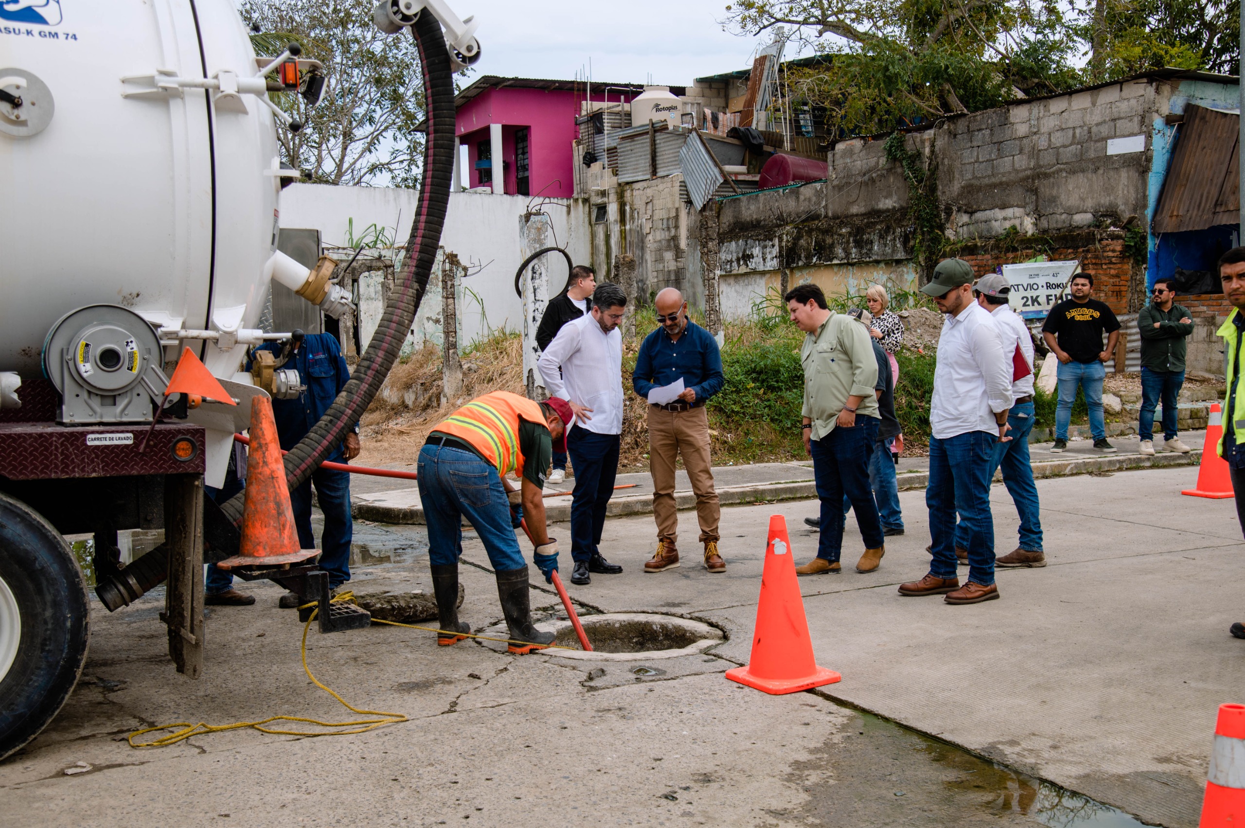 Posteriormente, el alcalde recorrió los trabajos que se desarrollan en la colonia Los Artistas, donde se ejecutan acciones de desazolve de la red de drenaje, como parte de una estrategia integral para mejorar los servicios básicos.