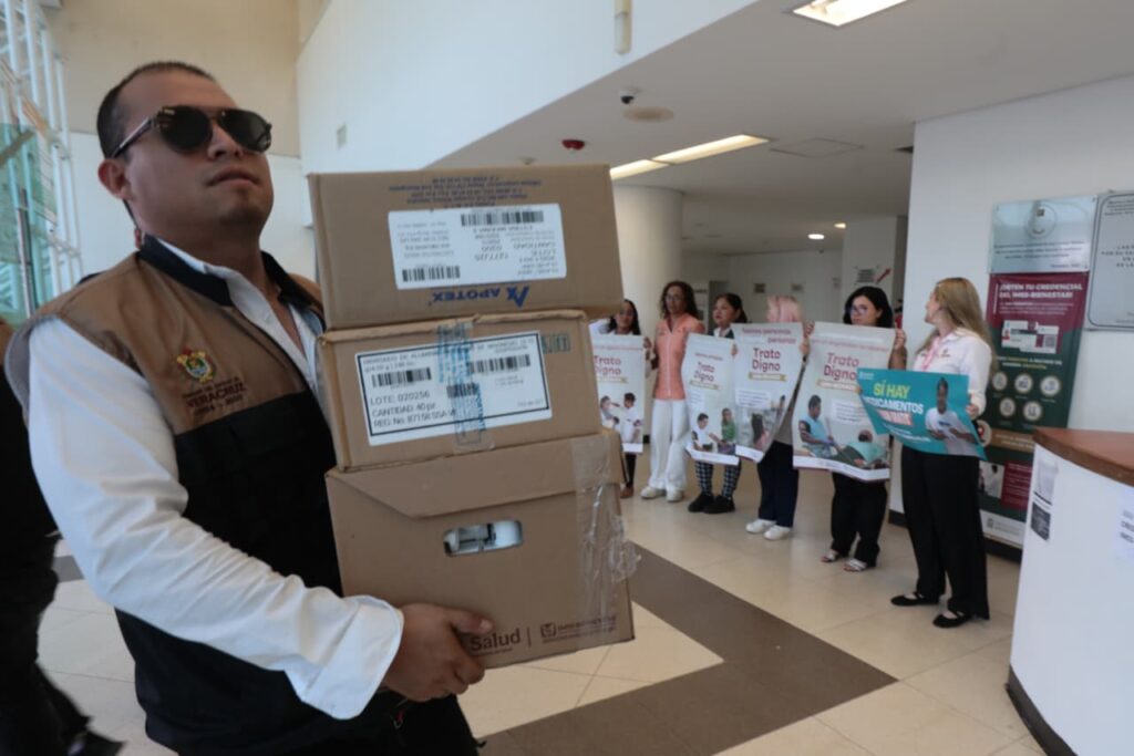 En la gira de distribución participaron la secretaria de Salud, Mariela Hernández García; la directora general de LimpiaVer, María Elena Velázquez Reyes; y el coordinador del IMSS-Bienestar en Veracruz, Roberto Ramos Alor.