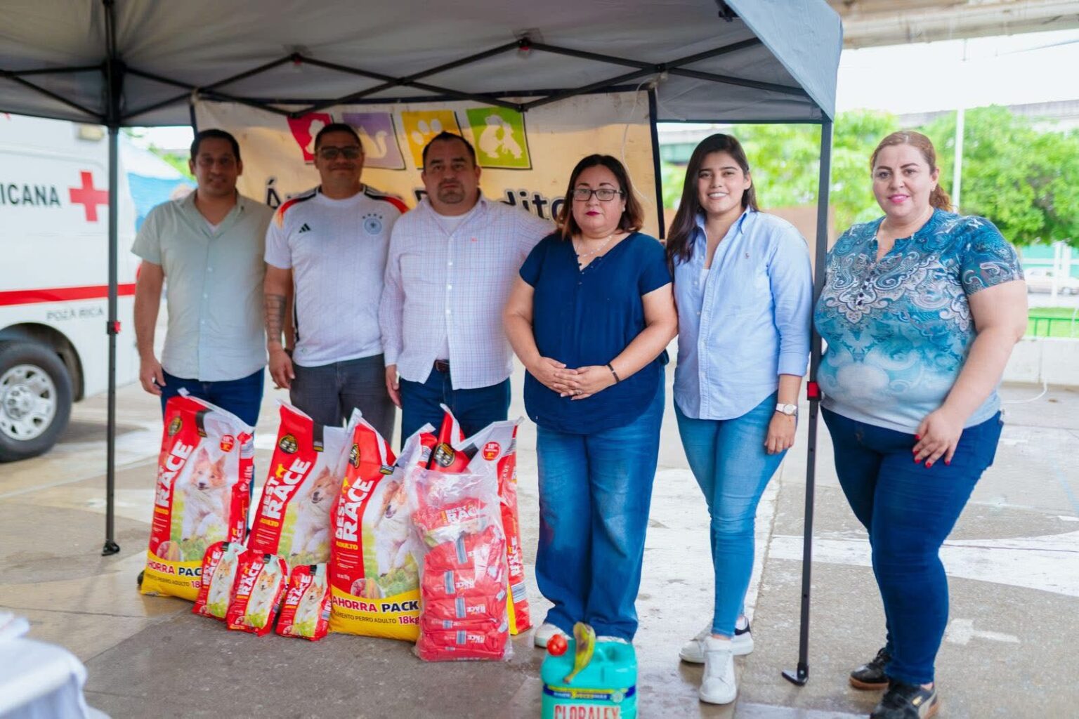 También acudió a la Plaza Cívica donde visitó a sus amigos del grupo Ángeles Peluditos, a quienes donó alimento como muestra de apoyo a su noble causa en favor de los animales en situación de calle.