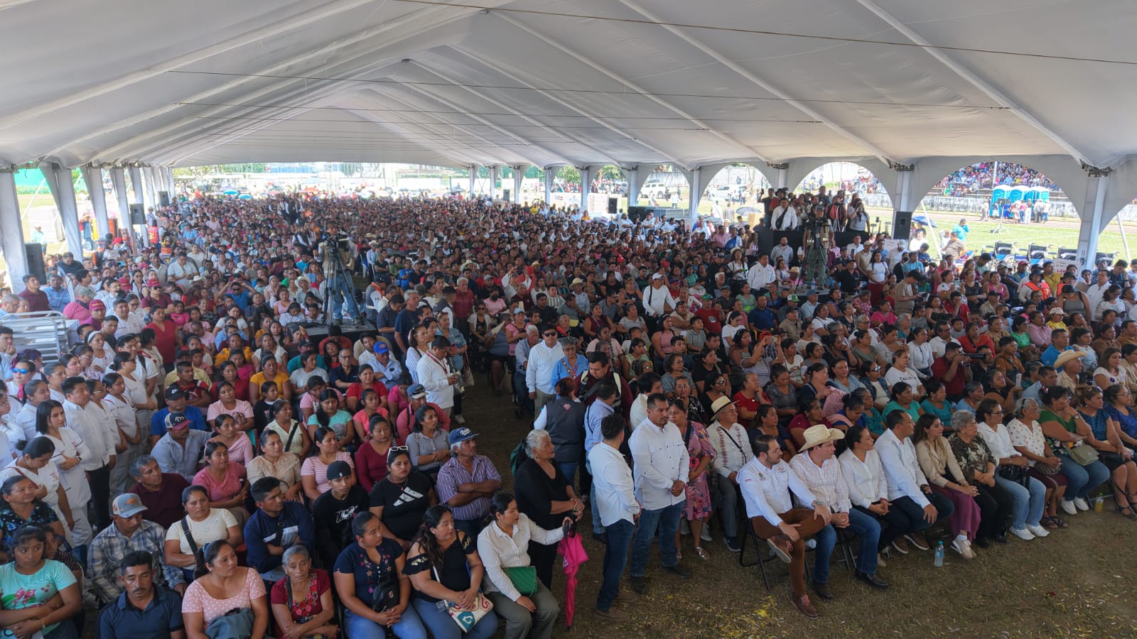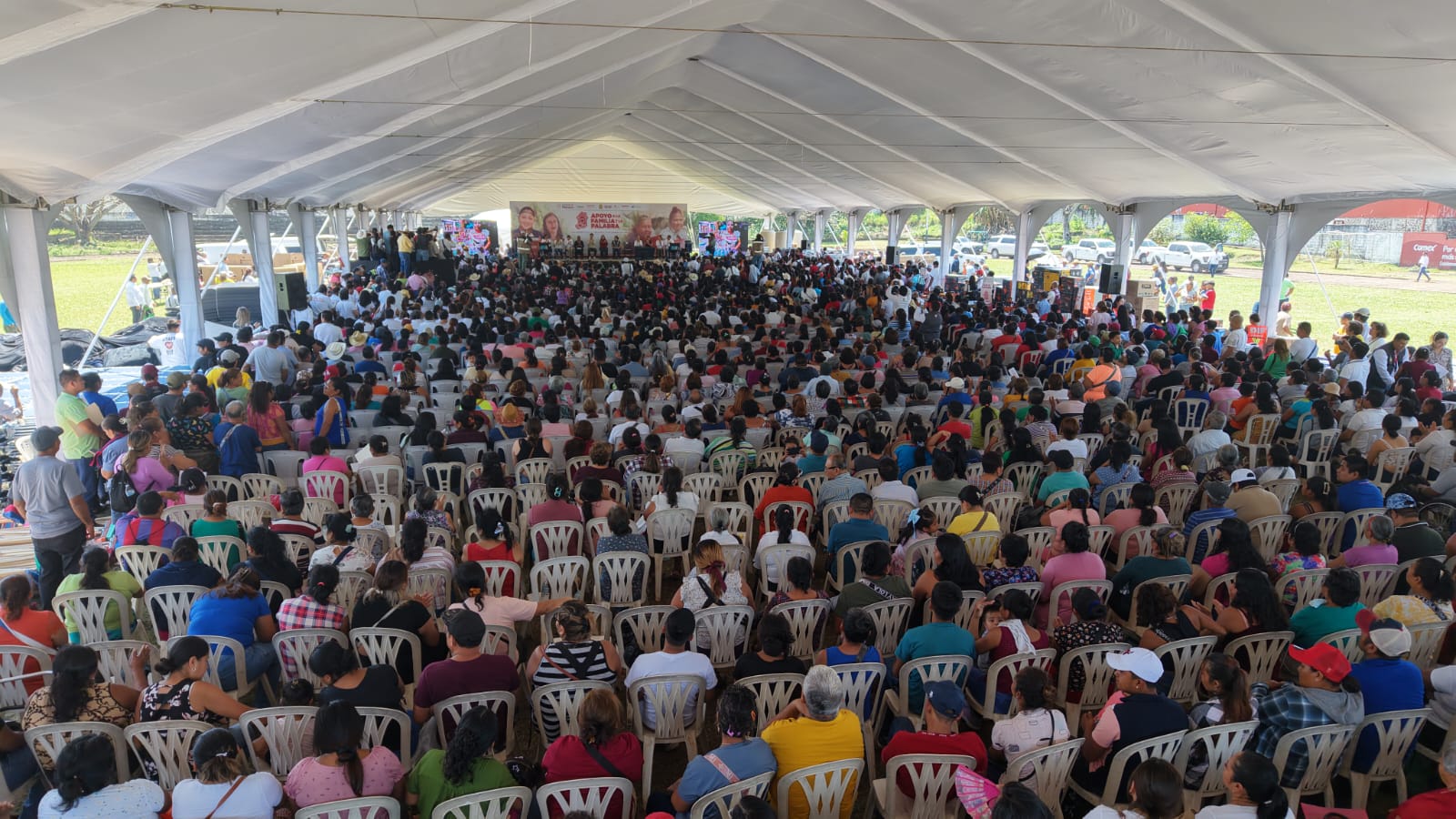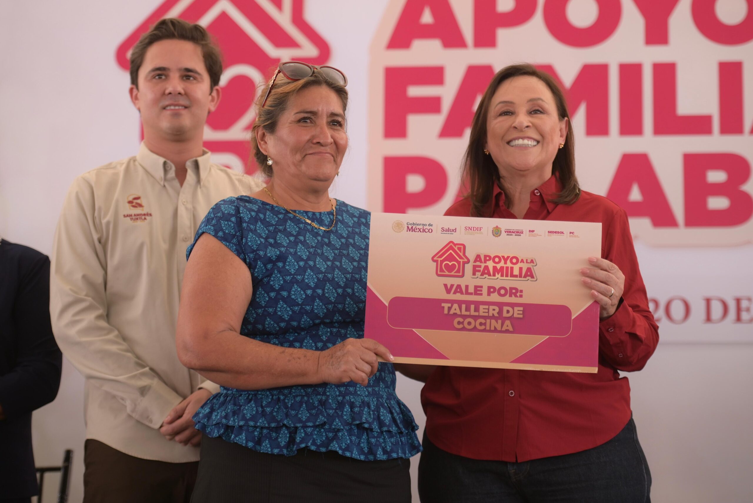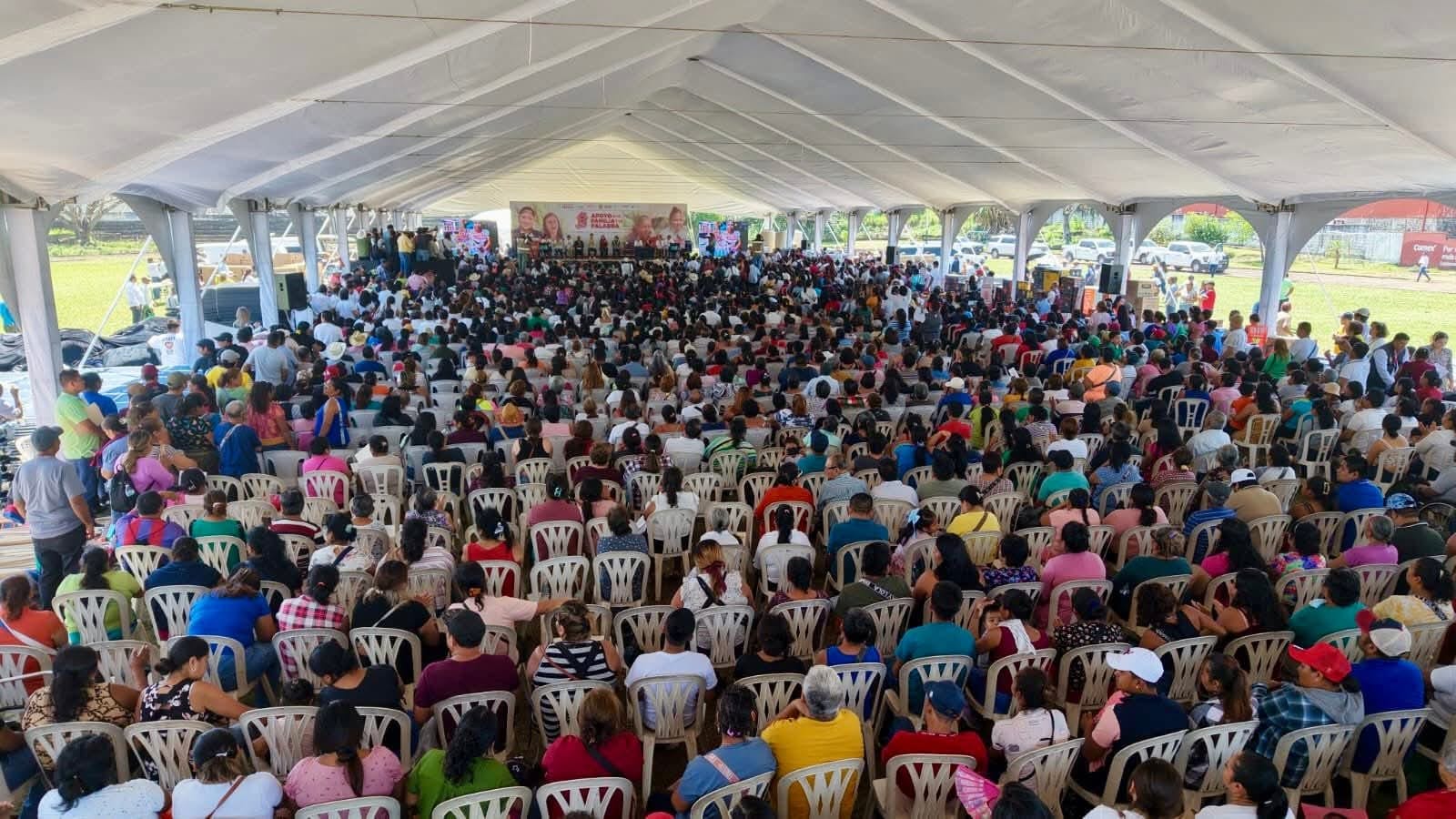 En la Unidad Deportiva ESBIO de San Andrés Tuxtla, la Mandataria encabezó el arranque y primera entrega de los programas Apoyo a la Palabra y Apoyo a la Familia, estrategia conjunta de la Secretaría de Desarrollo Social y el Sistema Estatal DIF que, en 2026, se extenderá a 112 municipios con una inversión global de 200 millones de pesos.
