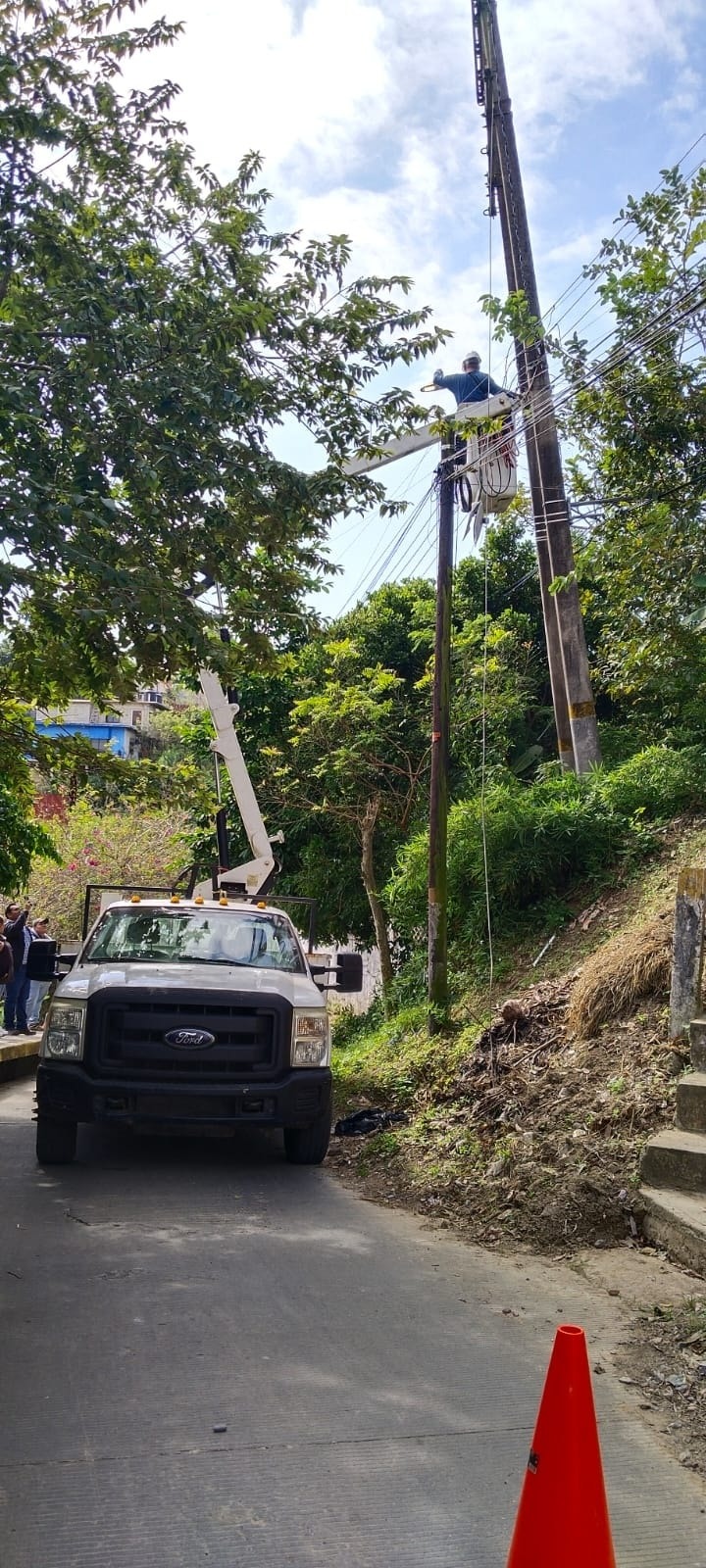 GUTIÉRREZ ZAMORA, VER.- El gobierno municipal, que preside Carlos Silva, informó que, en atención a un reporte ciudadano realizado el pasado miércoles, este viernes personal del departamento de alumbrado público, a cargo del ingeniero Jesús Ramírez García, se trasladó a la entrada de la colonia del Carmen para realizar la reparación de una luminaria que, de acuerdo con vecinos, llevaba tiempo sin recibir mantenimiento.