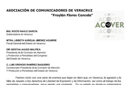 Xalapa, Veracruz, México. 16/02/2026 Angelica Hernández/QUE Noticias La Asociación de Comunicadores de Veracruz (ACOVER) alzó la voz y denunció públicamente…