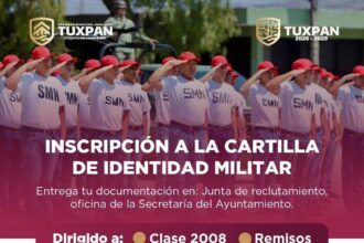 Del 12 de enero al 15 de octubre de 2026 se llevará a cabo el proceso de inscripción para la Cartilla de Identidad Militar en el municipio de Tuxpan