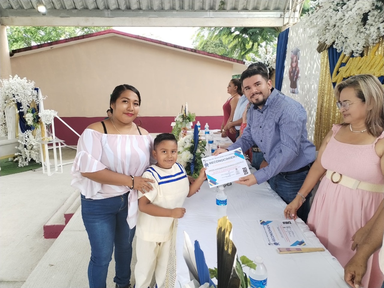 Asimismo, hizo extensiva la invitación a las niñas y niños que culminan una etapa más de su vida, expresando su agradecimiento por la invitación para acompañarlos en una fecha tan importante como lo es la culminación de su nivel primaria, por lo que los exhortó a continuar preparándose y continuando con su formación académica.