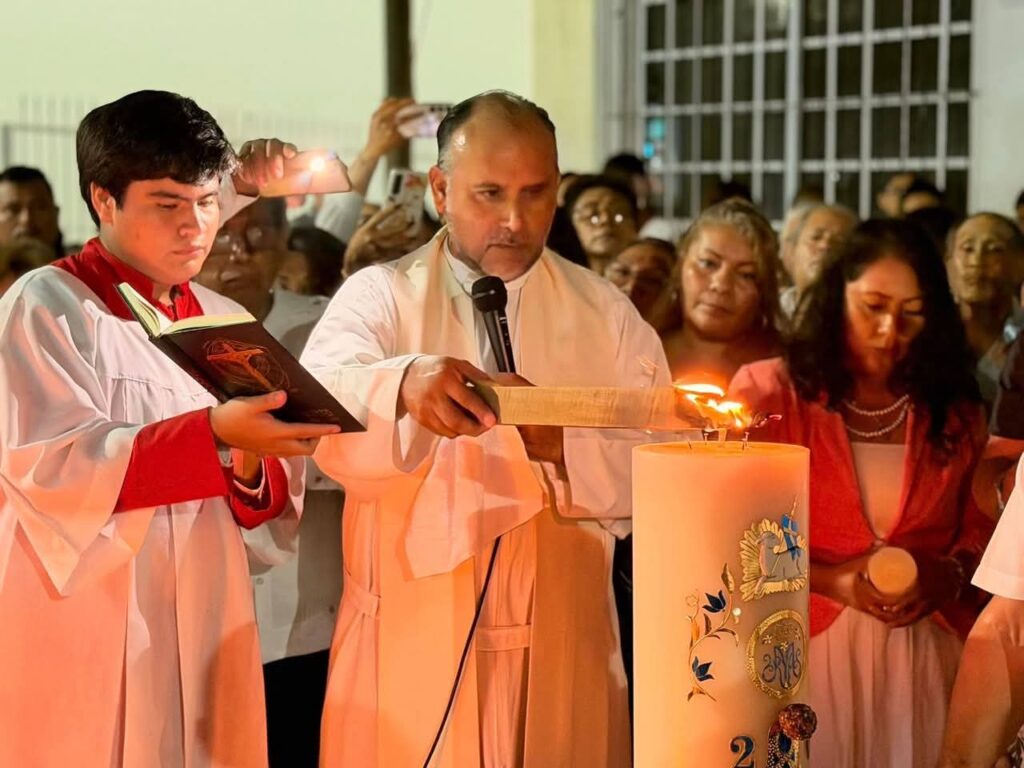 En medio de la oscuridad, el encendido del Cirio Pascual —símbolo de Cristo como Luz del Mundo— disipó las sombras, marcando el inicio de una liturgia cargada de esperanza y simbolismo sobre el triunfo sobre la muerte.