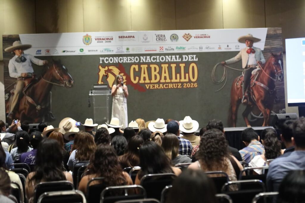 Boca del Río, Ver., viernes 24 de abril de 2026.- La gobernadora Rocío Nahle García participó en la jornada ecuestre del Primer Congreso Nacional del Caballo, realizado en el WTC, espacio donde convergen tradición, innovación y desarrollo productivo.
