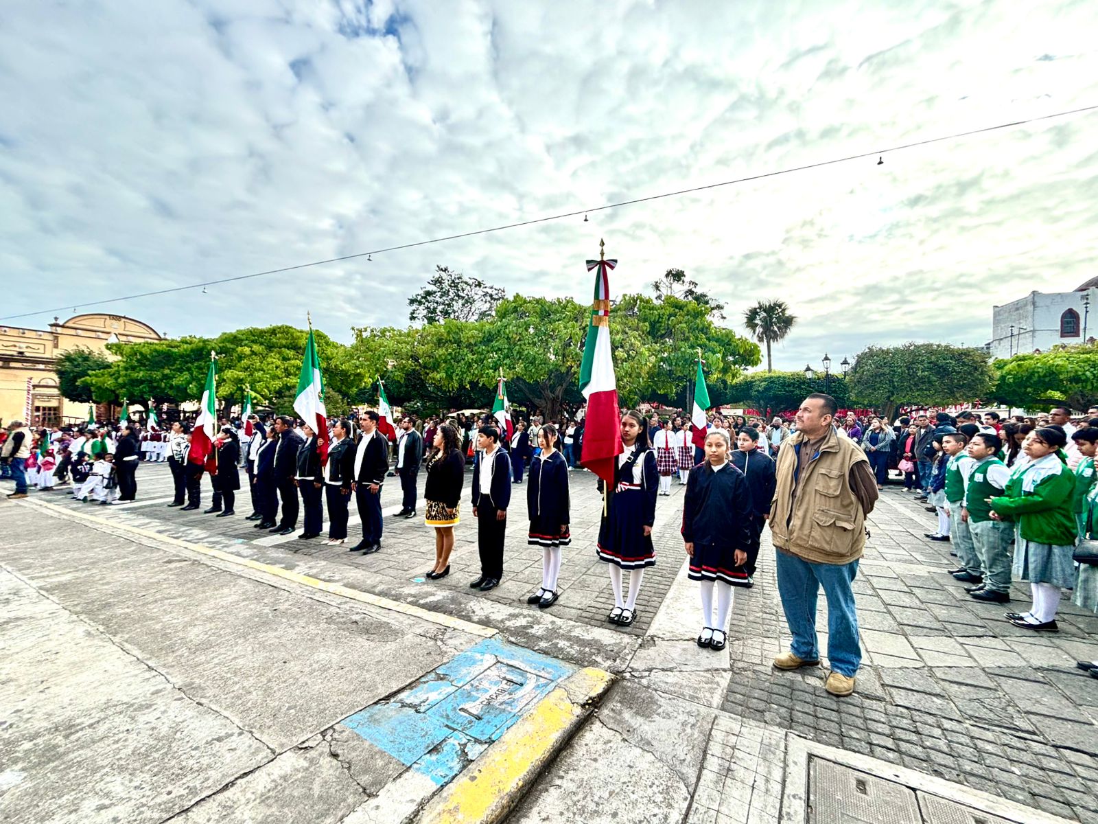 Con la presencia de integrantes del cuerpo edilicio, funcionarios municipales, alumnos de veinte instituciones educativas y de la escuela secundaria “Justo Sierra Méndez”, se rindieron honores al lábaro patrio en esta fecha significativa para la vida nacional.