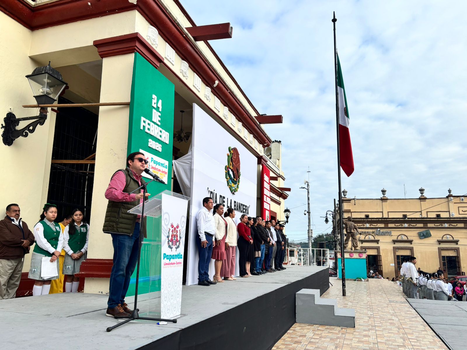 PAPANTLA, VER.- El gobierno municipal que preside Gonzalo Flores Castellanos, llevó a cabo la mañana de este martes un acto cívico conmemorativo por el Día de la Bandera, celebrado en la explanada del palacio municipal.