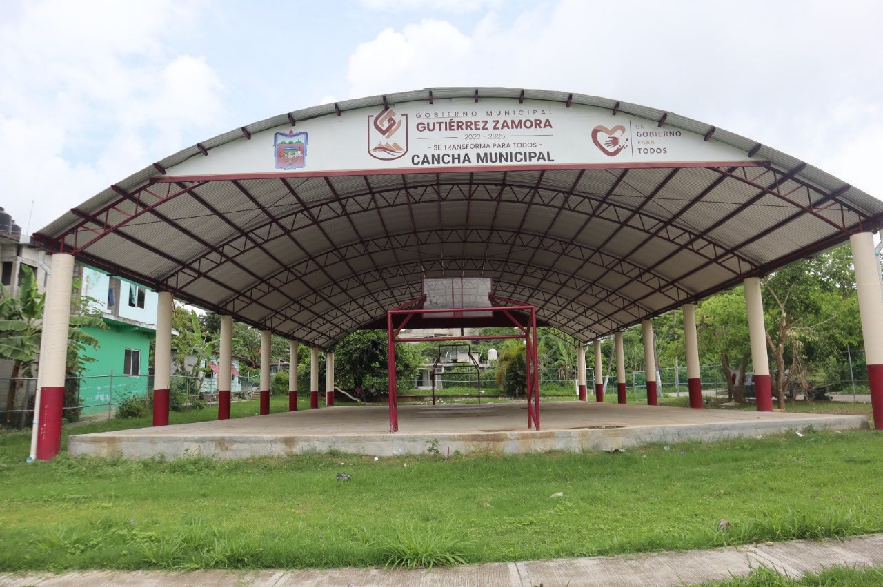 GUTIÉRREZ ZAMORA, VER.- Dando continuidad al compromiso de mejorar las áreas recreativas y el rescate de espacios públicos de este municipio, el gobierno municipal que preside Frans Aparicio Reyes, viene realizando la construcción de una cancha deportiva en la colonia Ampliación 1 de Mayo, obra de gran beneficio para los habitantes de este sector.
