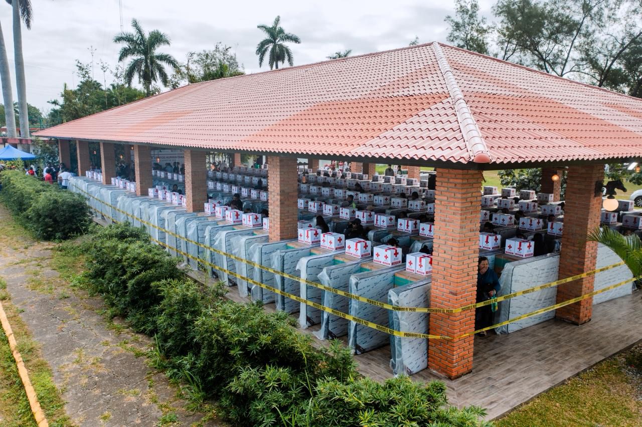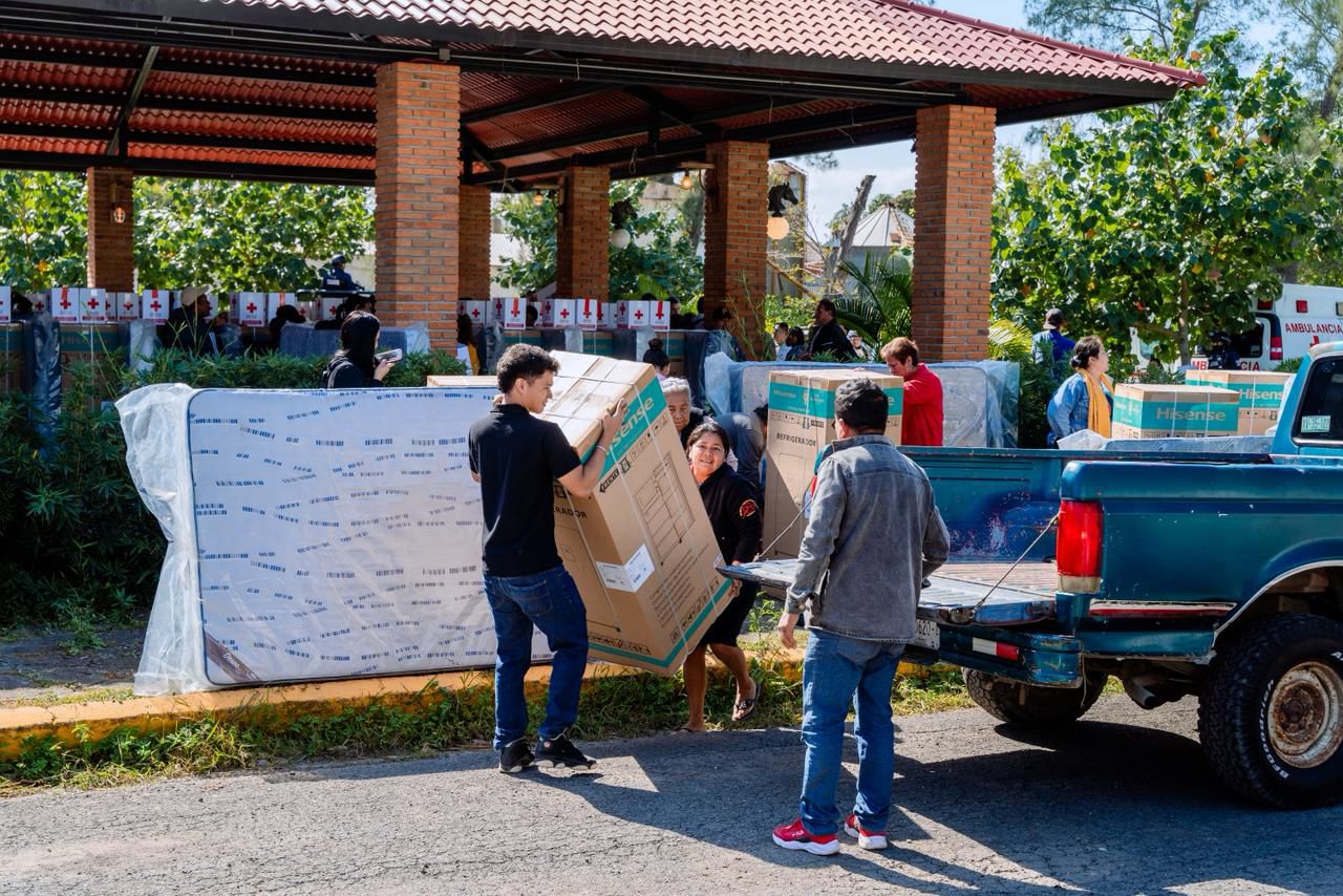 La jornada se llevó a cabo en el campo Damián Carmona, de la Asociación Ganadera Local de Tuxpan, donde más de 300 familias recibieron apoyos consistentes en refrigeradores y colchones, así como kits de higiene personal, kits de limpieza y kits alimentarios, sumando más de cinco toneladas de ayuda humanitaria.