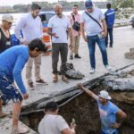 En un recorrido de supervisión directa, el alcalde Daniel Cortina acudió a las labores de reparación de una importante fuga de agua localizada sobre el Boulevard, reafirmando su compromiso con la mejora de los servicios básicos de la ciudad.