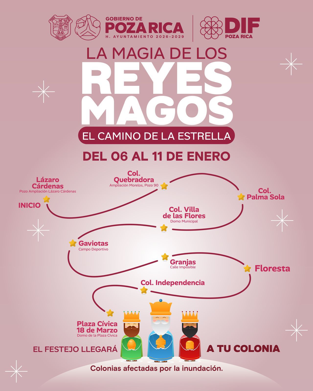 importantes para las niñas y niños de Poza Rica, por ello el Sistema Municipal DIF prepara un recorrido del 06 al 10 de enero, priorizando los sectores que sufrieron afectaciones por las pasadas inundaciones, esto con el objetivo de llevar alegría y magia a las familias de este municipio.