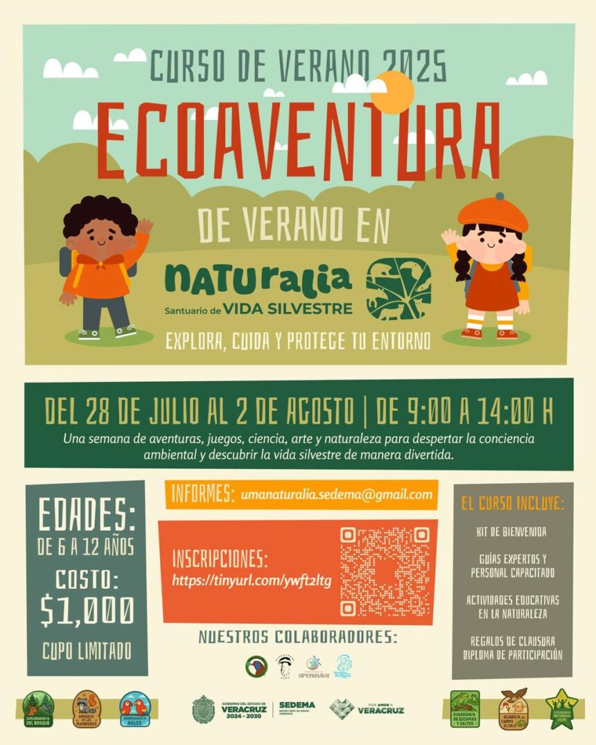 Hasta el 02 de agosto, la Secretaría de Medio Ambiente lleva a cabo el Curso de Verano Eco Aventura 2025 en Naturalia, Santuario de Vida Silvestre, iniciativa que promueve la educación ambiental en un entorno de aprendizaje vivencial y cercano a la naturaleza.