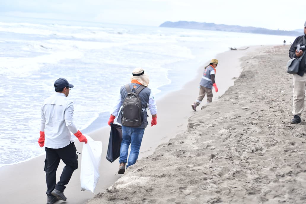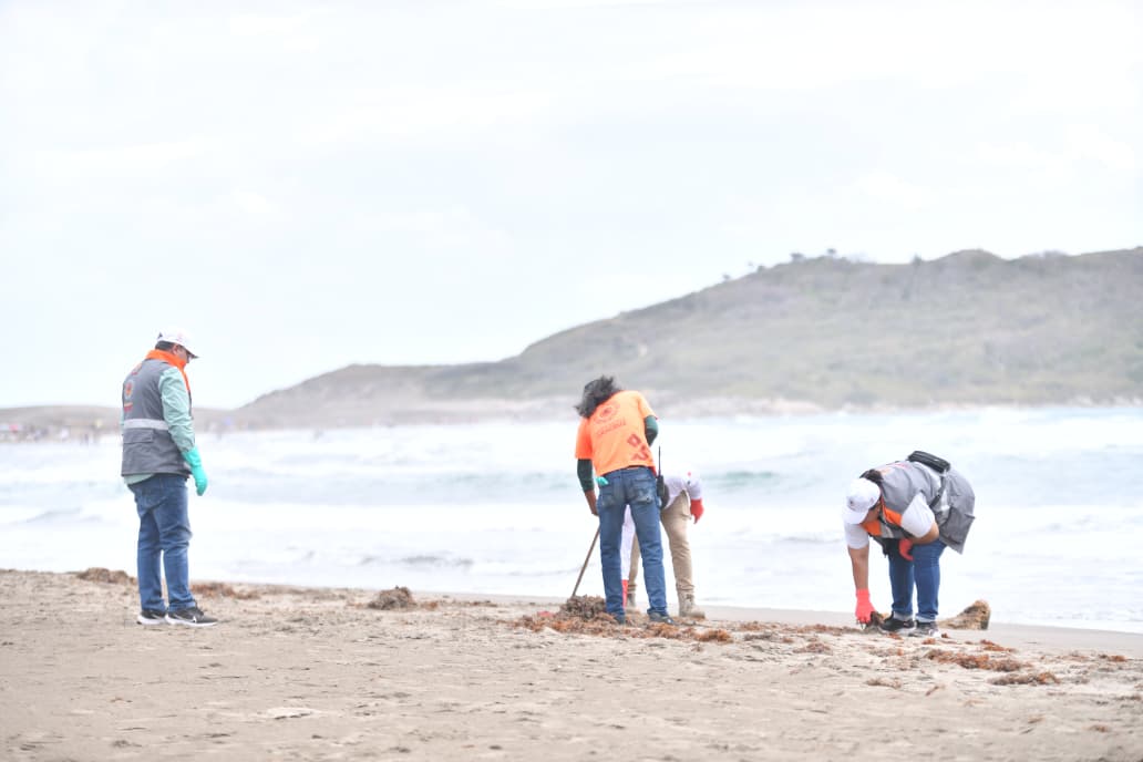 Desde temprana hora, brigadas integradas por 66 personas recorren un tramo aproximado de 2 kilómetros de costa, donde realizan labores de recolección de residuos, como parte de un operativo que se ha sostenido durante cuatro días consecutivos, registrando una disminución progresiva en la presencia de trazas de hidrocarburos.