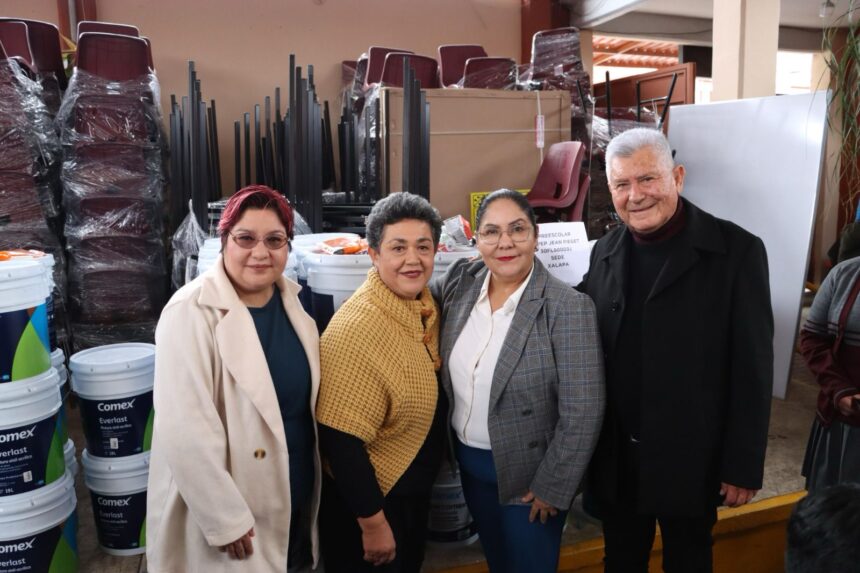 Xalapa, Ver., jueves 05 de febrero de 2026.- Como parte del programa Transformando la educación, la Secretaría de Educación de Veracruz entregó pantallas, mobiliario y material de mantenimiento en cinco planteles de Xalapa, beneficiando a mil 122 estudiantes.