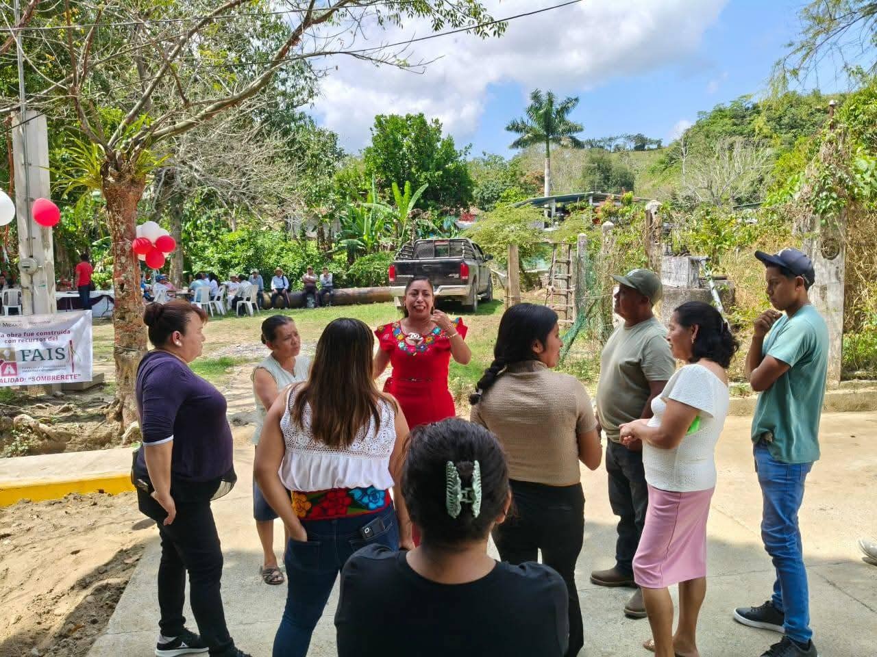 La funcionaria acudió al evento tras recibir la invitación del comité de obra de la localidad, con motivo de la entrega formal de los proyectos concluidos, los cuales benefician de manera directa a las familias de esta zona.
