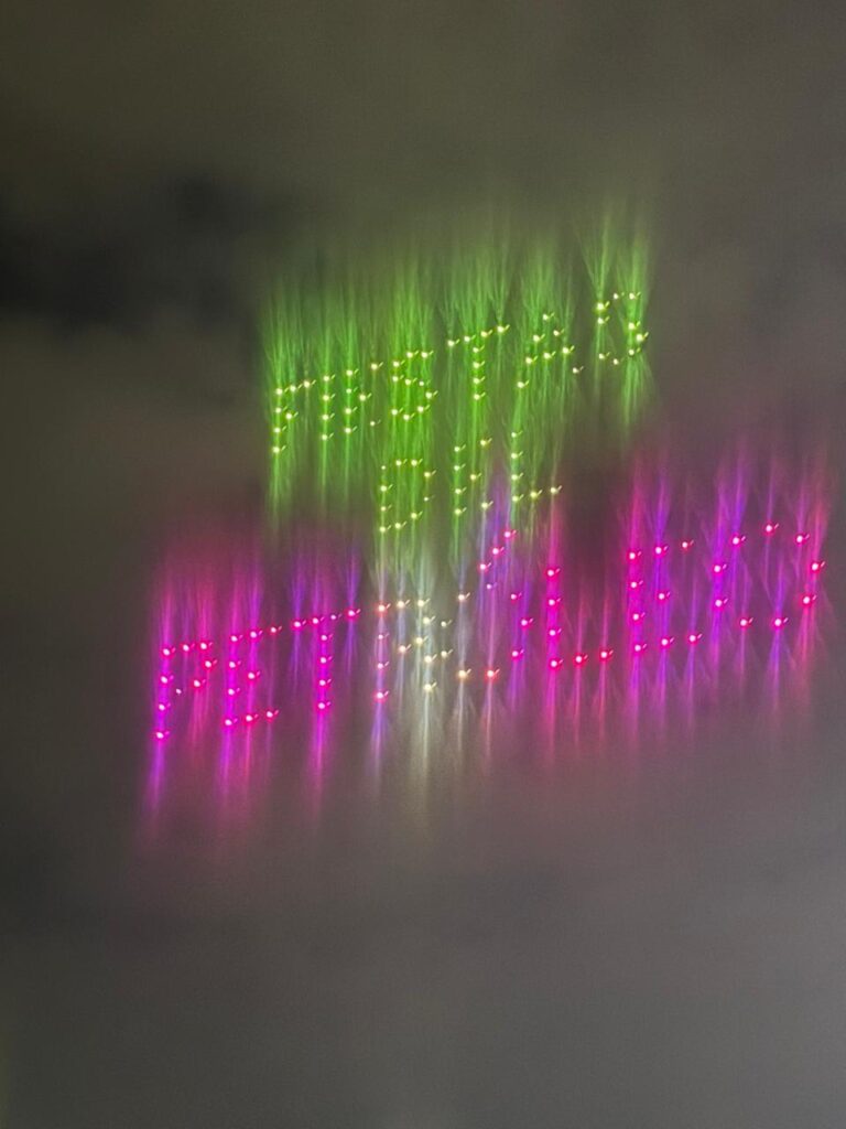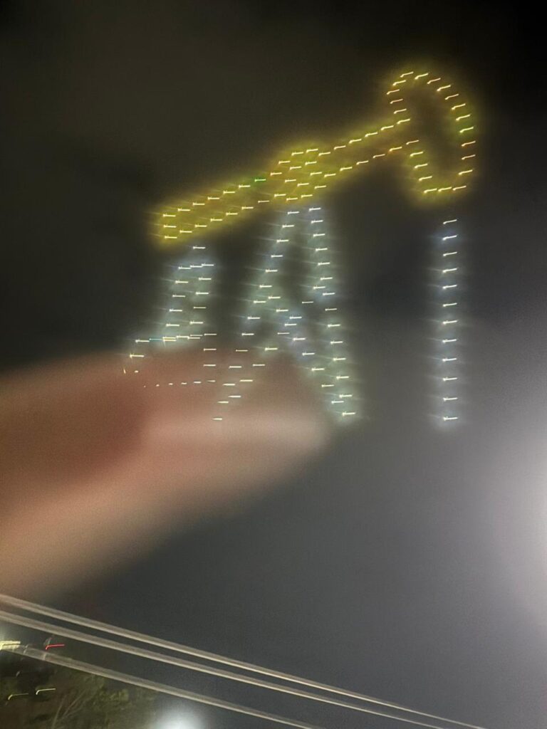 Durante la exhibición, el cielo se iluminó con impresionantes figuras como el reloj de la paz, la bimba petrolera, representaciones del palacio municipal, así como mensajes emblemáticos como “Veracruz está de moda” y “¡Viva Poza Rica!”, creando una experiencia visual sin precedentes en el municipio.