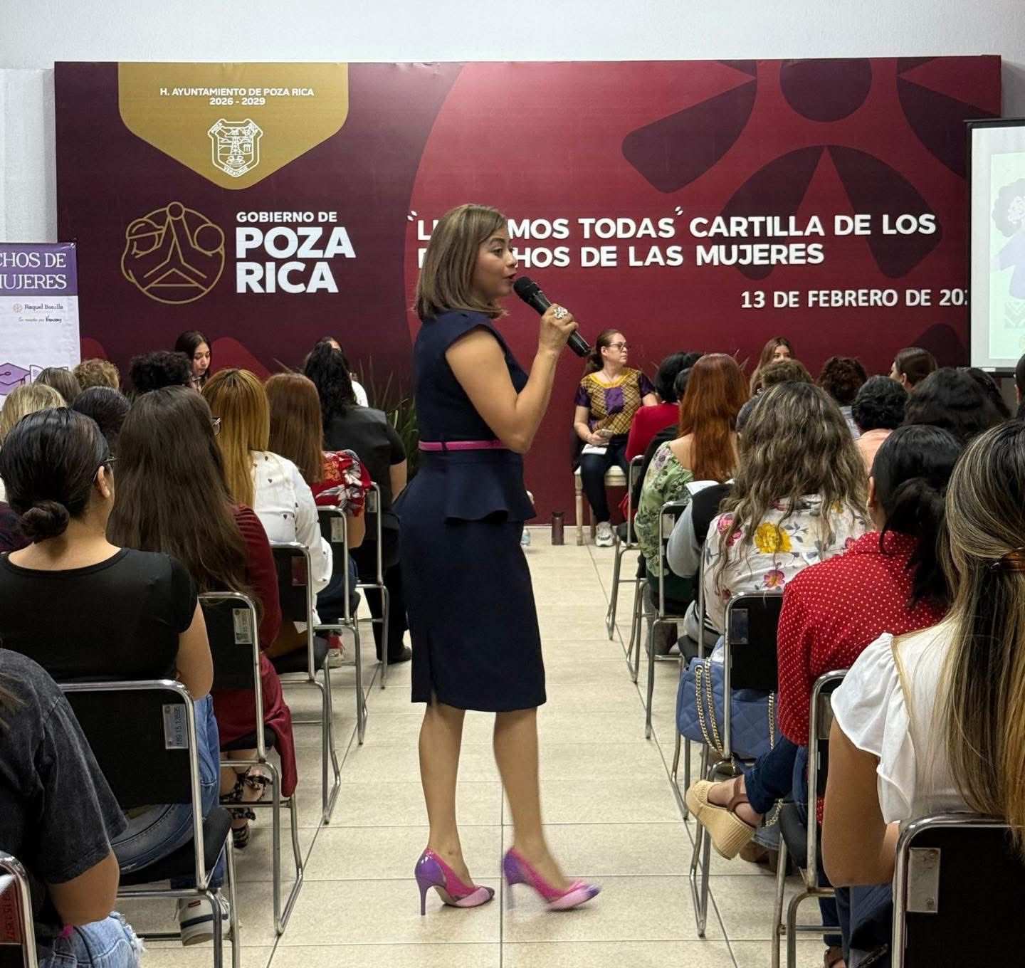 Poza Rica, Ver.- En el marco de la Presentación de la Cartilla de los Derechos de las Mujeres, la Presidenta Municipal de Poza Rica, Adanely Rodríguez, afirmó que los ejes principales del Gobierno Municipal son la protección, la prevención y el acompañamiento integral a las mujeres de la ciudad.