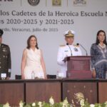 En acto solemne la gobernadora Rocío Nahle García asistió como madrina e invitada de honor del secretario de Marina, Raymundo Pedro Morales Ángeles, a la ceremonia de graduación de las generaciones 2020-2025 y 2021-2025 de la Heroica Escuela Naval Militar, ubicada en Antón Lizardo.