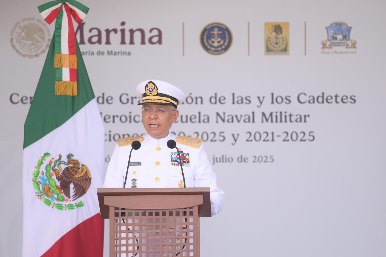 En acto solemne la gobernadora Rocío Nahle García asistió como madrina e invitada de honor del secretario de Marina, Raymundo Pedro Morales Ángeles, a la ceremonia de graduación de las generaciones 2020-2025 y 2021-2025 de la Heroica Escuela Naval Militar, ubicada en Antón Lizardo.