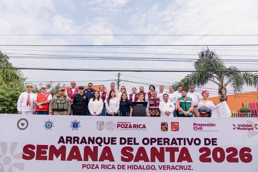 Poza Rica, Ver.– Con el objetivo de garantizar la seguridad, el orden y la atención oportuna durante el periodo vacacional, el Gobierno de Poza Rica, encabezado por la Presidenta Municipal Adanely Rodríguez, dio el banderazo de inicio al Operativo Semana Santa 2026, una estrategia integral que prioriza la protección de las familias pozarricenses y de quienes visitan la ciudad.