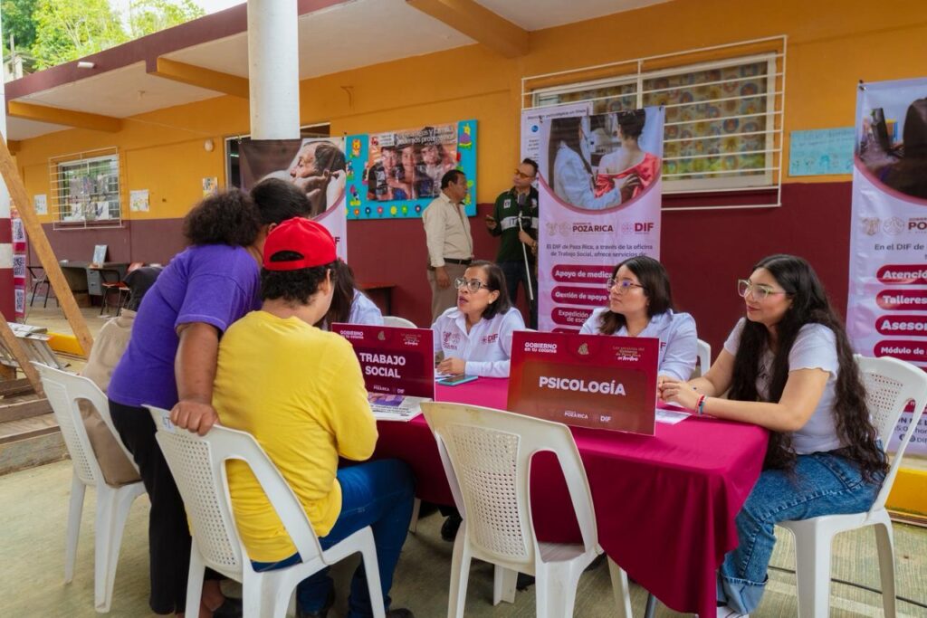 La jornada se llevó a cabo en las instalaciones de la Escuela Primaria Gabriela Mistral, beneficiando a familias del sector Óscar Torres Pancardo, quienes accedieron a servicios médicos básicos, asesorías, trámites administrativos y apoyos sociales, a través de módulos instalados por distintas áreas municipales en coordinación con el Sistema Municipal DIF.