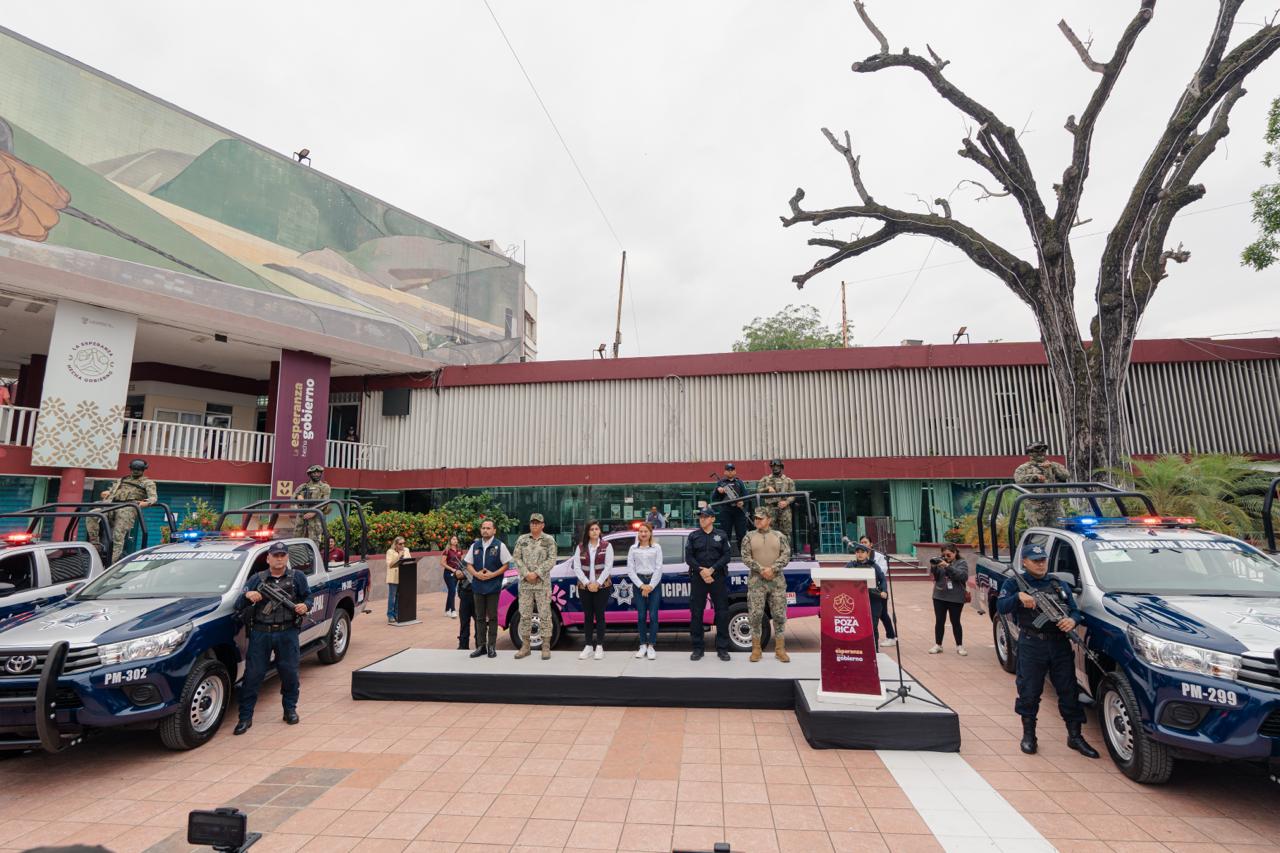 Poza Rica, Veracruz. — En una acción firme y decidida para fortalecer la seguridad y proteger la tranquilidad de las familias pozarricenses, el Gobierno de Poza Rica, encabezado por la Presidenta Municipal Adanely Rodríguez, realizó la entrega de cinco nuevas unidades a la Policía Municipal.