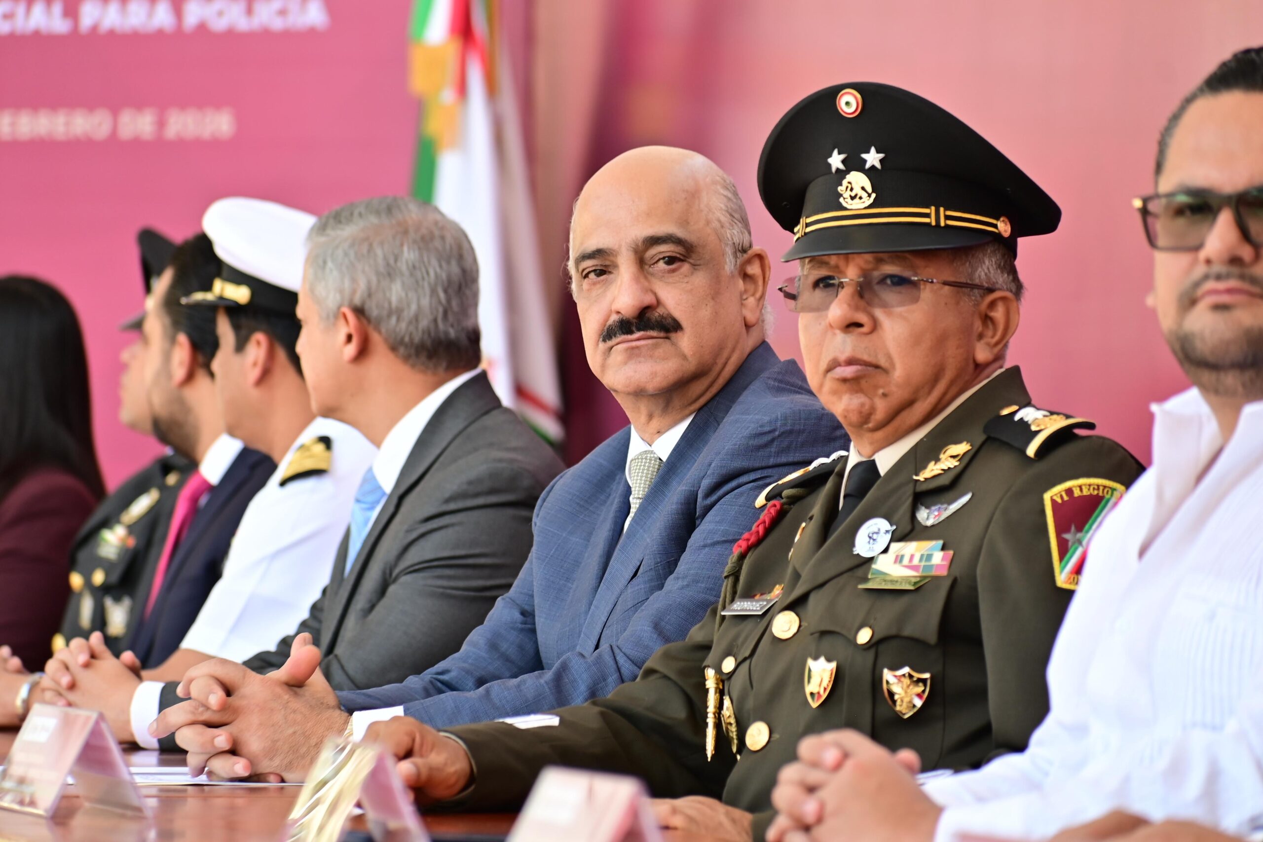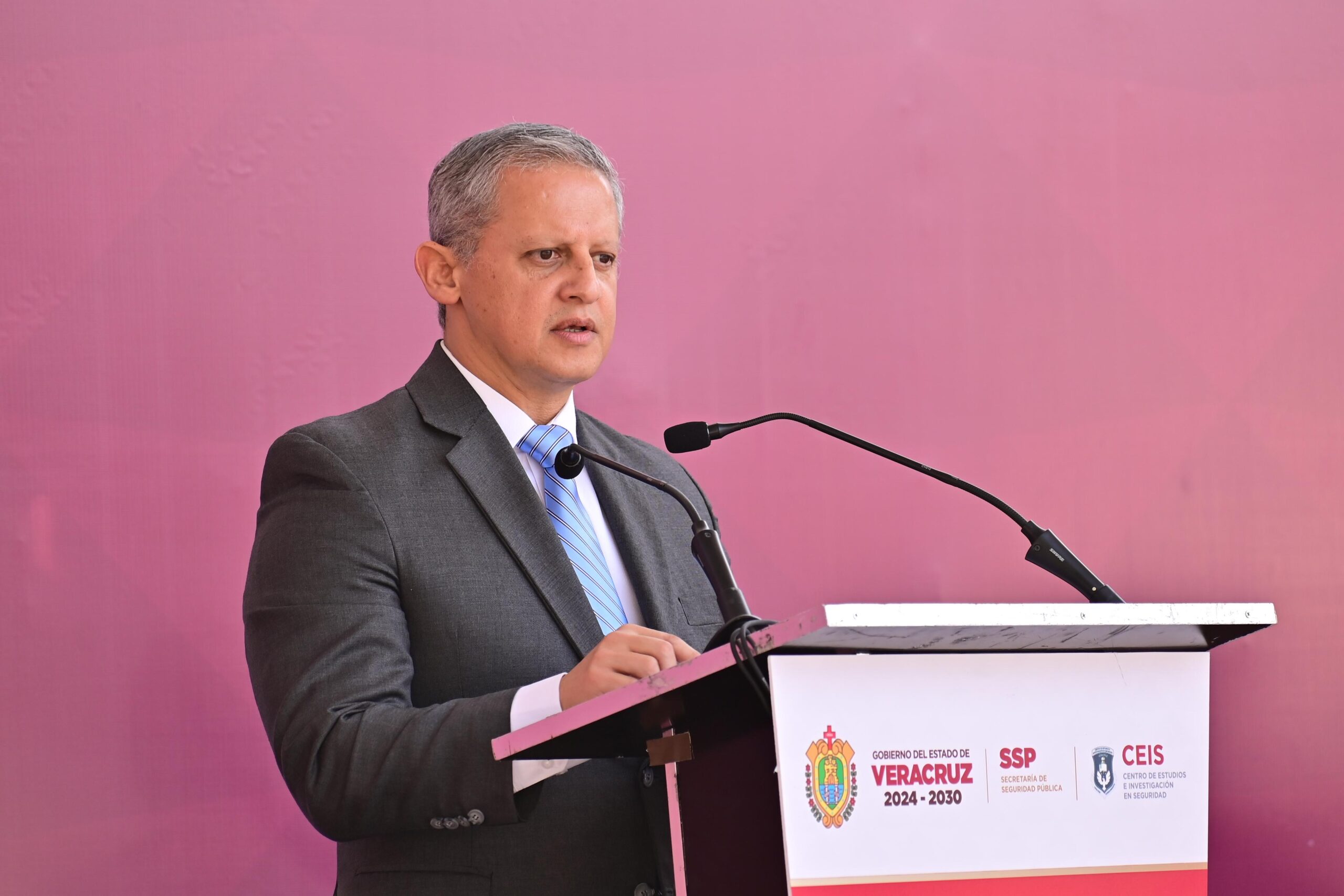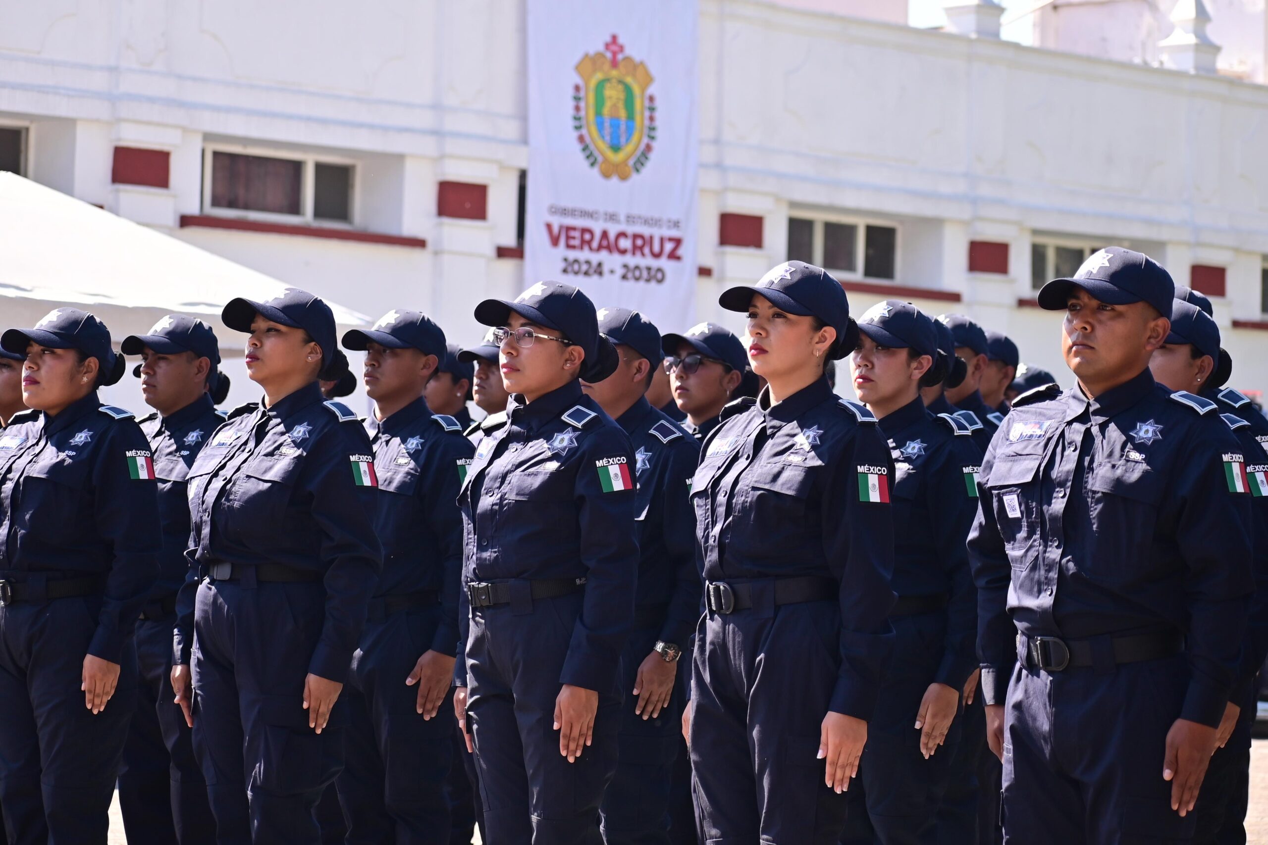 Durante la ceremonia de graduación y Jura de Bandera del Curso de Formación Inicial para Policía de Proximidad Aspirante Estatal Generación XLI, el secretario Alfonso Reyes Garcés informó que esta medida responde a la instrucción de la gobernadora Rocío Nahle García de respaldar a los municipios en el fortalecimiento de sus instituciones policiales.