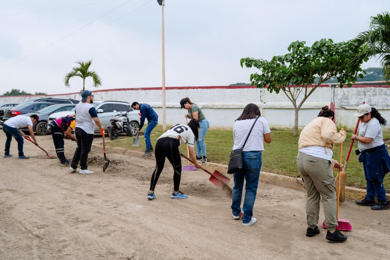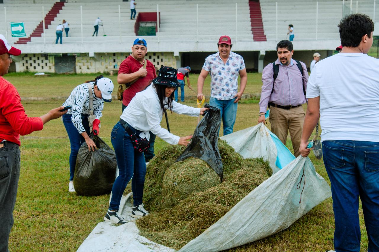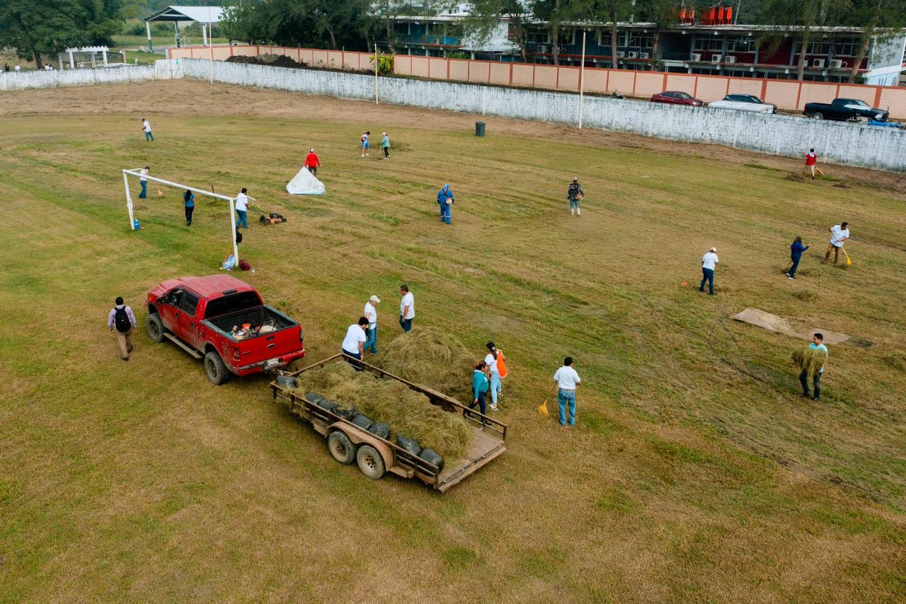Tuxpan, Veracruz.– Este sábado se llevó a cabo una jornada masiva de limpieza y recuperación de áreas en la Unidad Deportiva “Enrique Valdez Constantino”, como parte de las acciones para rescatar y dignificar los espacios públicos del municipio.