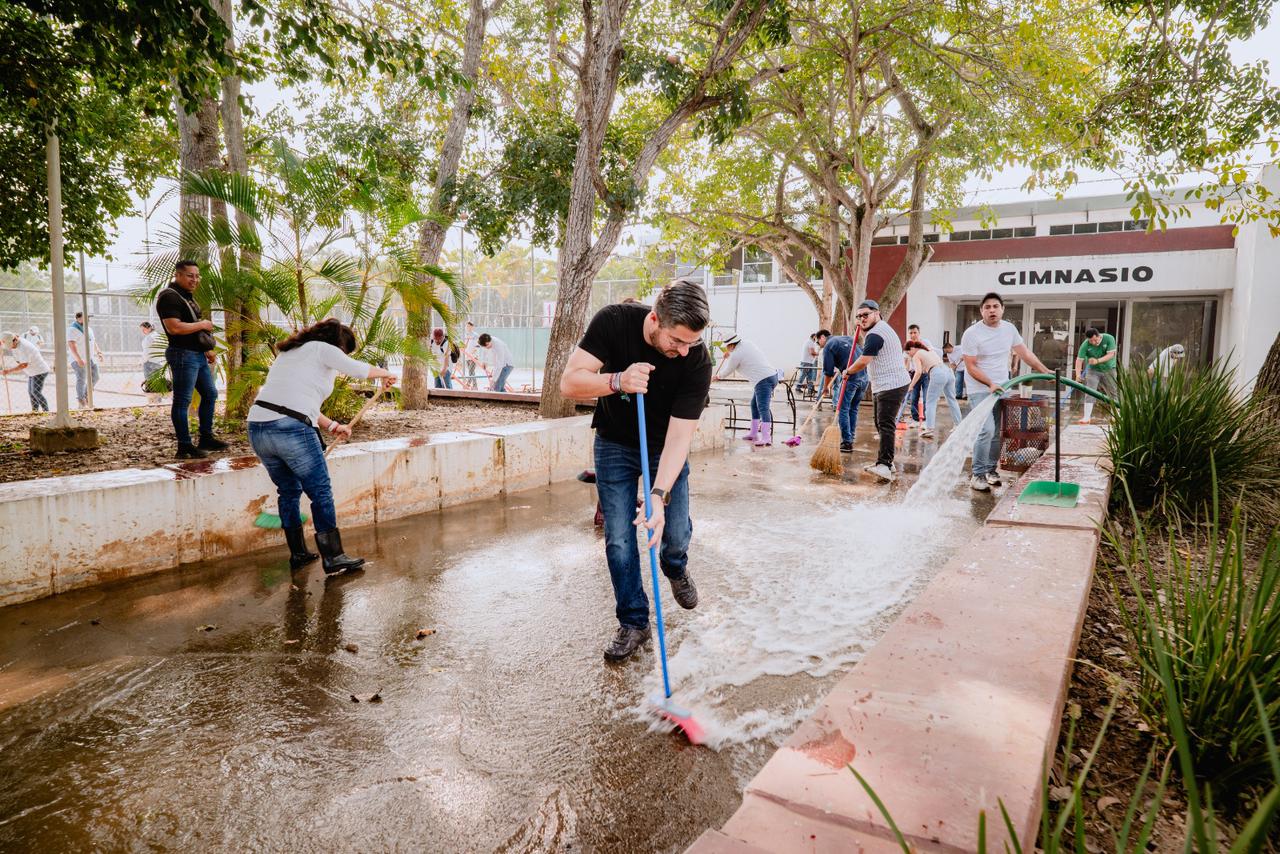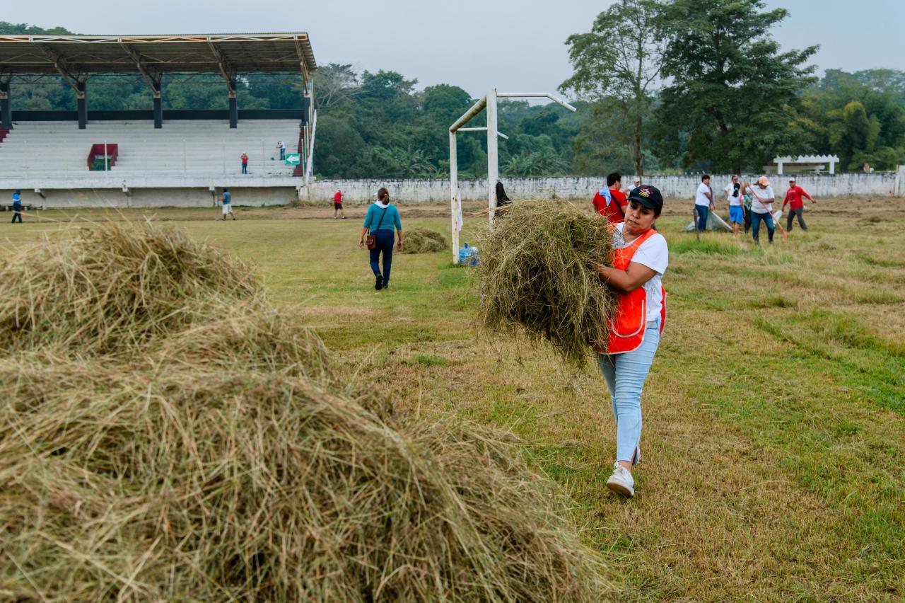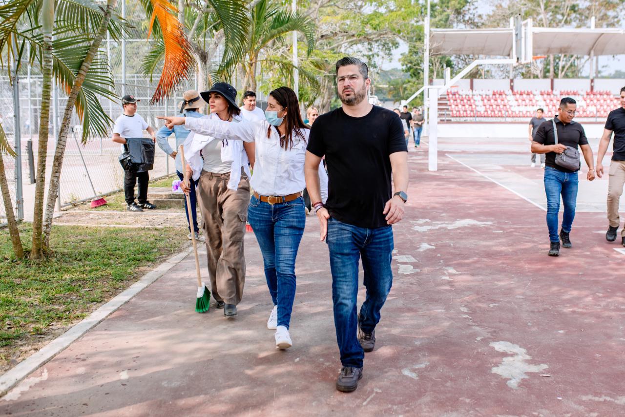 Tuxpan, Veracruz.– Este sábado se llevó a cabo una jornada masiva de limpieza y recuperación de áreas en la Unidad Deportiva “Enrique Valdez Constantino”, como parte de las acciones para rescatar y dignificar los espacios públicos del municipio.