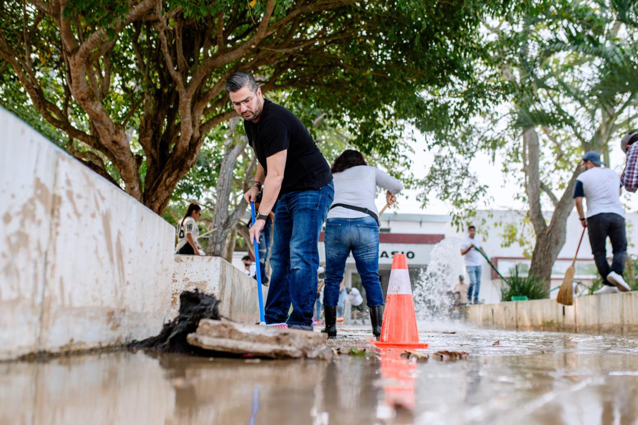 Durante la jornada se realizaron labores de limpieza general, retiro de residuos y rehabilitación de áreas comunes. Para fortalecer los trabajos, se contó con el apoyo de maquinaria especializada, incluyendo tres pipas de agua y una unidad de desazolve combinado, lo que permitió mejorar de manera significativa las condiciones del lugar.