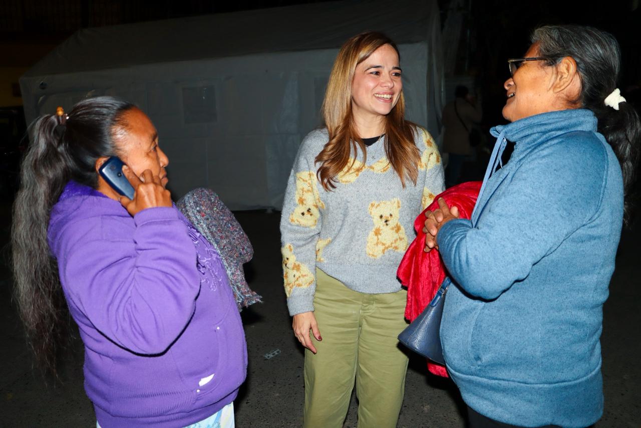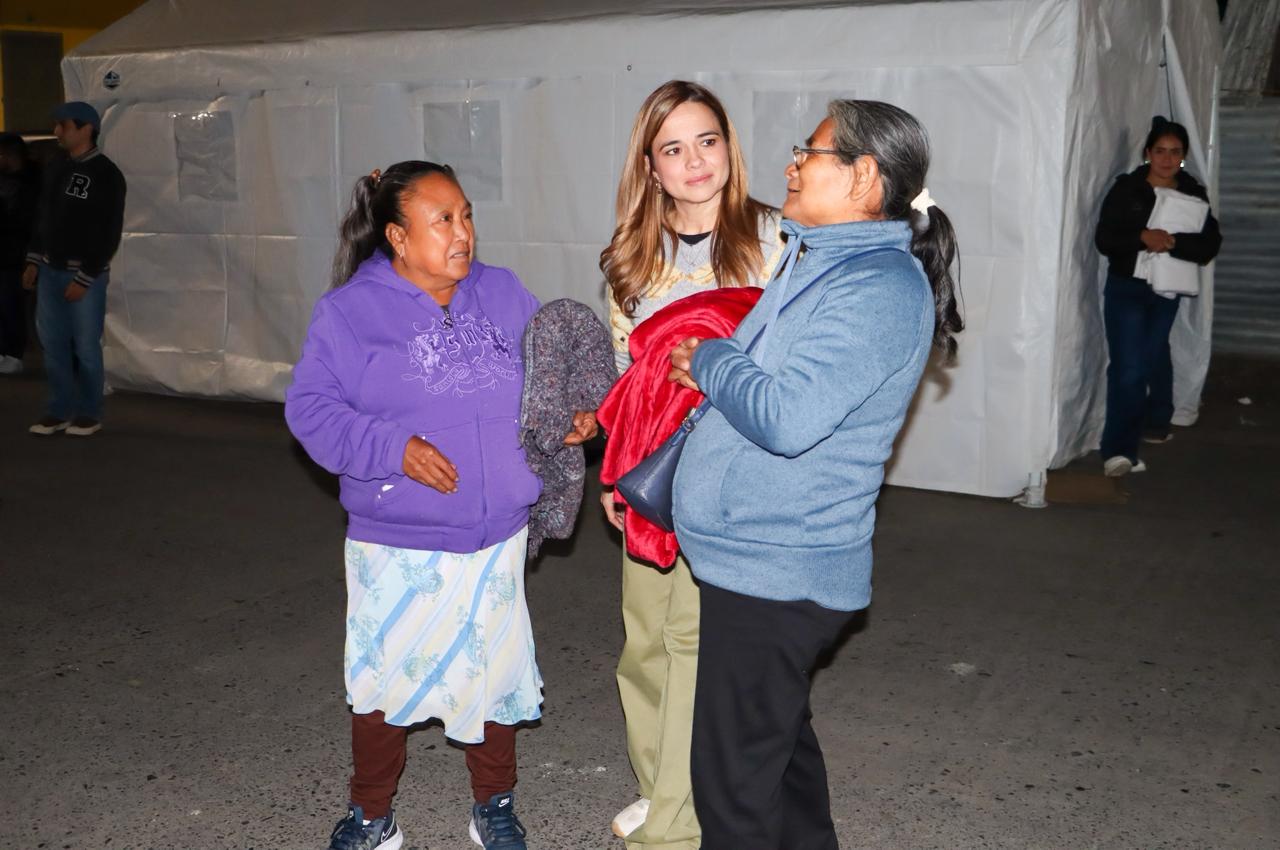 Como parte de estas acciones, la presidenta del DIF municipal, Marisol Martínez Barrios, proporcionó baños portátiles, camastros, cobijas y café caliente, con el objetivo de proteger la salud de las familias y brindarles condiciones más dignas durante su estancia en estos espacios, especialmente durante las noches con mayor descenso de temperatura.