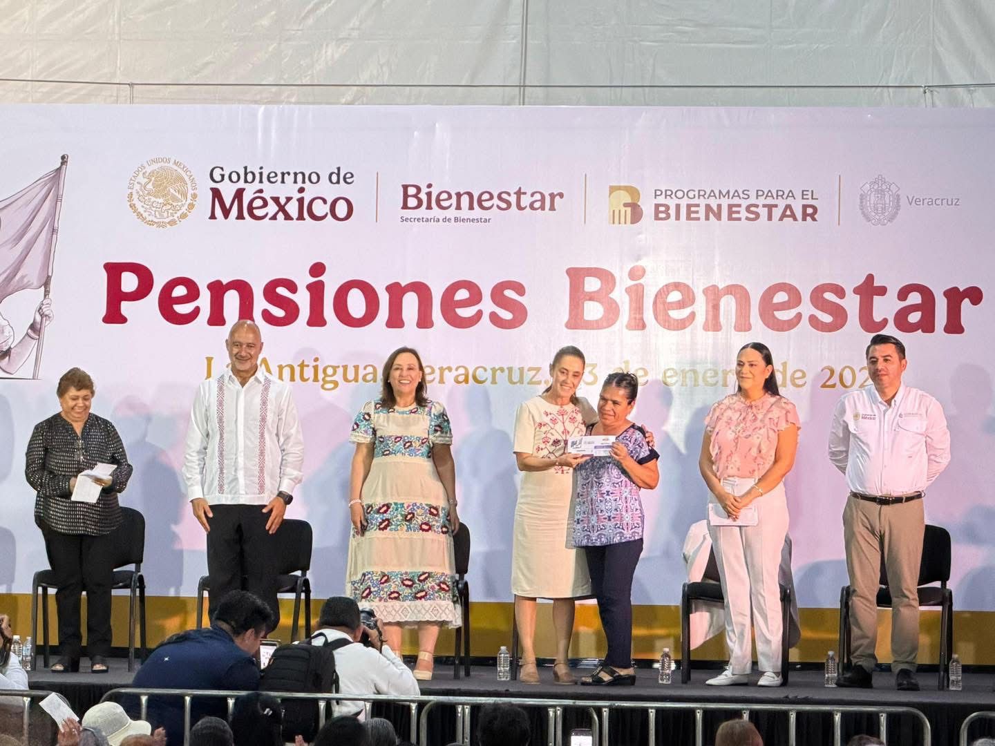 Durante su gira, la presidenta estuvo acompañada por la gobernadora Ing. Rocío Nahle García, con quien encabezó la entrega de viviendas para familias veracruzanas, garantizando hogares dignos y seguros; posteriormente, en el municipio de La Antigua, se realizó la entrega de apoyos del Programa para el Bienestar.