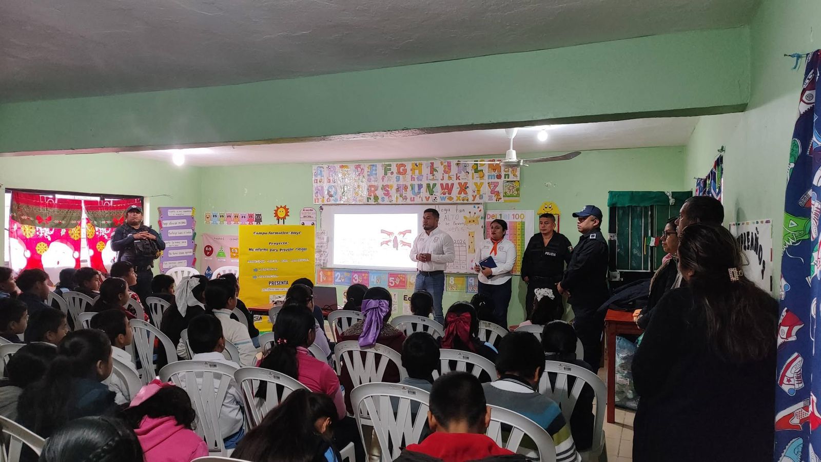 MECATLÁN, VER.- Por instrucciones del alcalde Miguel Vázquez Antonio, el Ayuntamiento llevó a cabo una jornada de orientación dirigida a estudiantes de cuarto, quinto y sexto grado de la escuela primaria estatal “José María Morelos”, con el objetivo de fortalecer la prevención de la violencia y promover entornos escolares seguros.