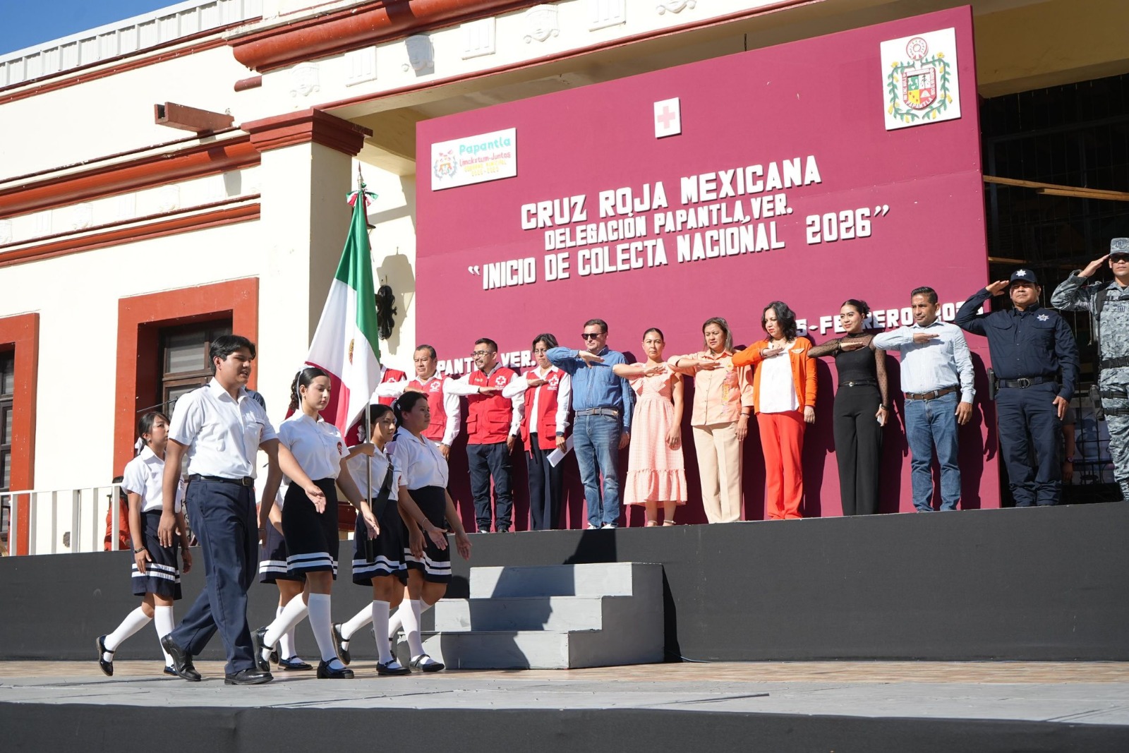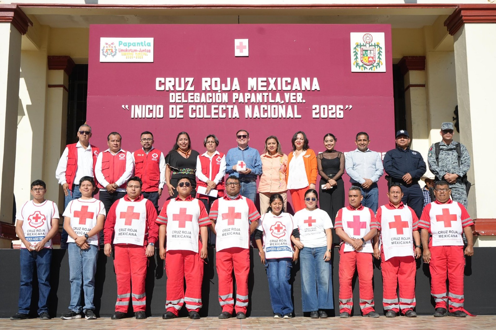 PAPANTLA, VER.- La explanada del palacio municipal fue el escenario del arranque oficial de la colecta nacional 2026 de la Cruz Roja Mexicana, evento que contó con la presencia de autoridades municipales, quienes realizaron la primera aportación voluntaria.