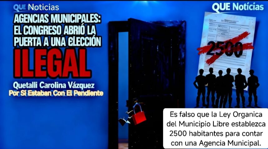 Es importante mencionar que la Ley Orgánica del Municipio Libre no ha sido reformada en ese sentido, la última reforma data de 2024, y en ningún momento se modificaron los artículos que regulan la organización territorial de los municipios para permitir la desaparición de agencias basada únicamente en el número de habitantes; para que eso ocurriera tendría que existir una reforma aprobada por el propio Congreso, cosa que simplemente no ha sucedido.