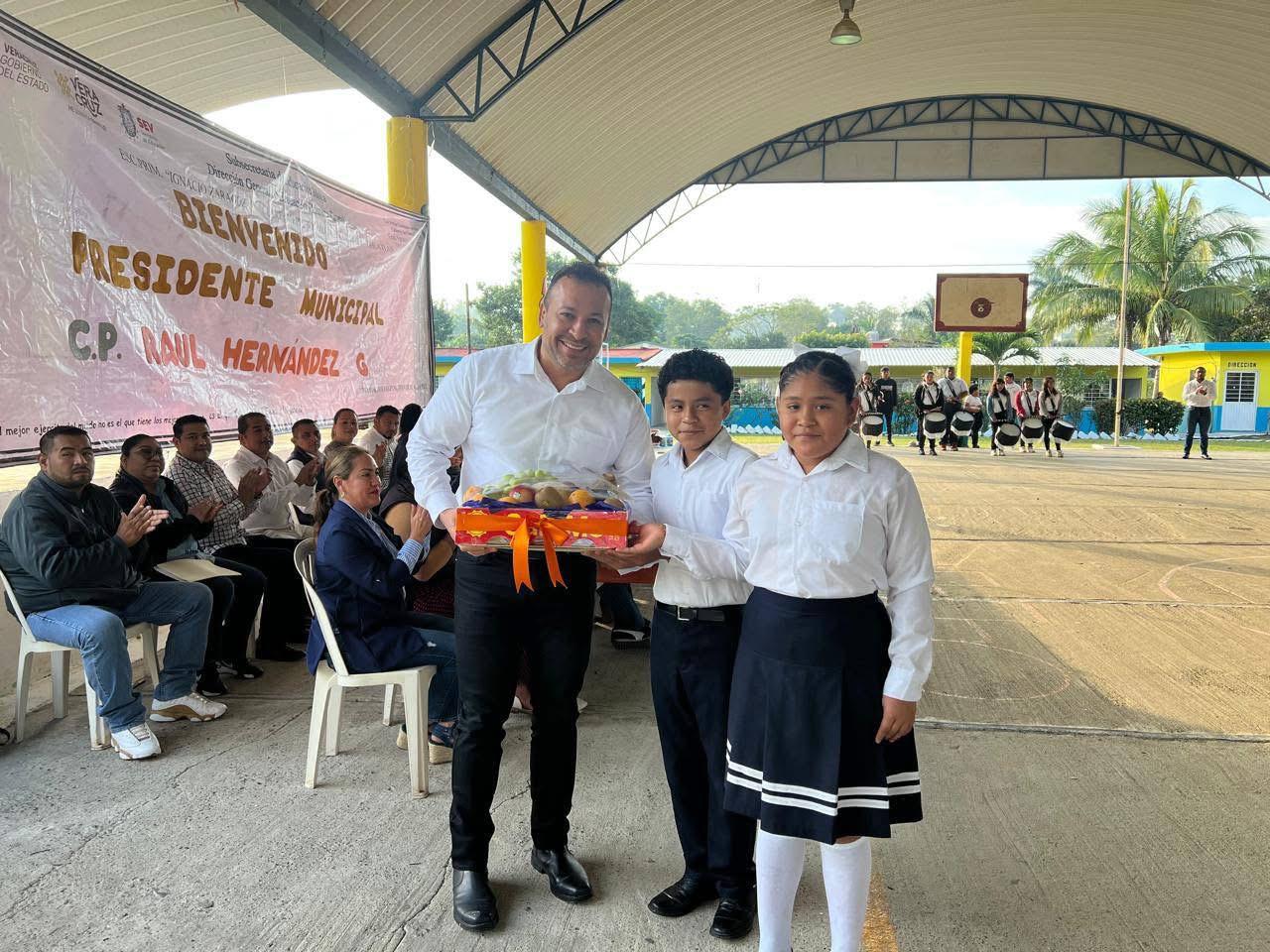 El Presidente Municipal de Tihuatlán, Raúl Hernández Gallardo, encabezó una jornada de trabajo en la localidad de Chichimantla, iniciando actividades con un acto cívico en la Escuela Primaria Ignacio Zaragoza, desarrollado en un ambiente de respeto, participación y fomento a los valores cívicos entre la comunidad estudiantil.