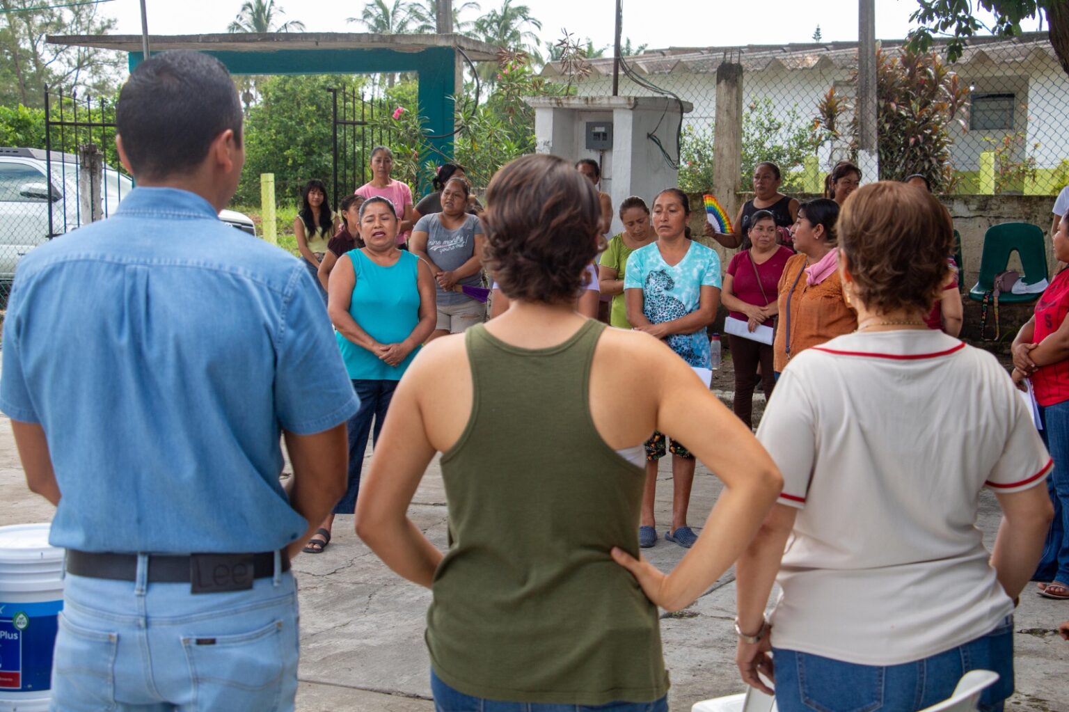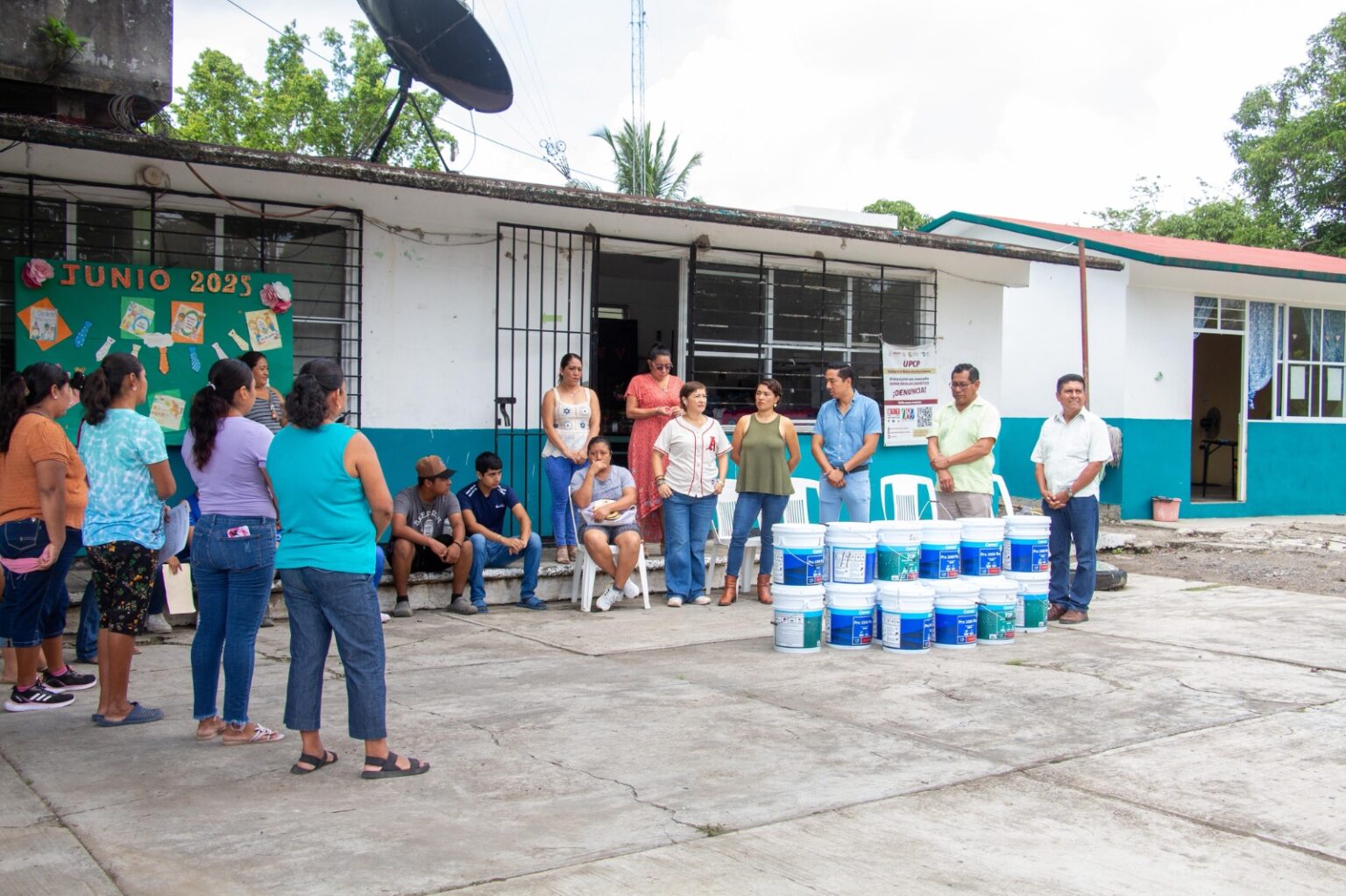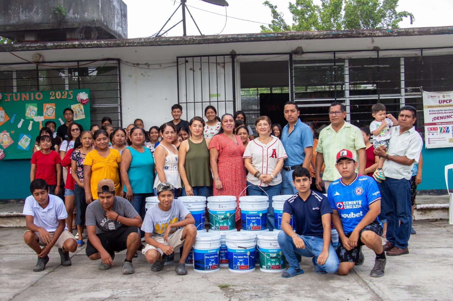 Álamo Temapache, Ver. – Reafirmando su compromiso con la educación y el mejoramiento de la infraestructura en las comunidades, la presidenta municipal Lilia Arrieta, en compañía de la presidenta del DIF Municipal, Asenet Castro, visitó la Telesecundaria de la localidad de Villa Hermosa para hacer entrega de pintura a madres, padres de familia y personal docente.