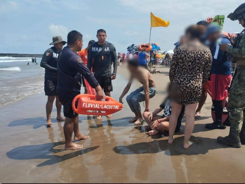 En el marco del operativo preventivo por la Semana Santa 2026, elementos de la Secretaría de Seguridad Pública (SSP), en una estrecha coordinación con la Secretaría de Marina (SEMAR), lograron el rescate exitoso de tres bañistas que fueron arrastrados por el fuerte oleaje mar adentro en los municipios de Tuxpan y Boca del Río.