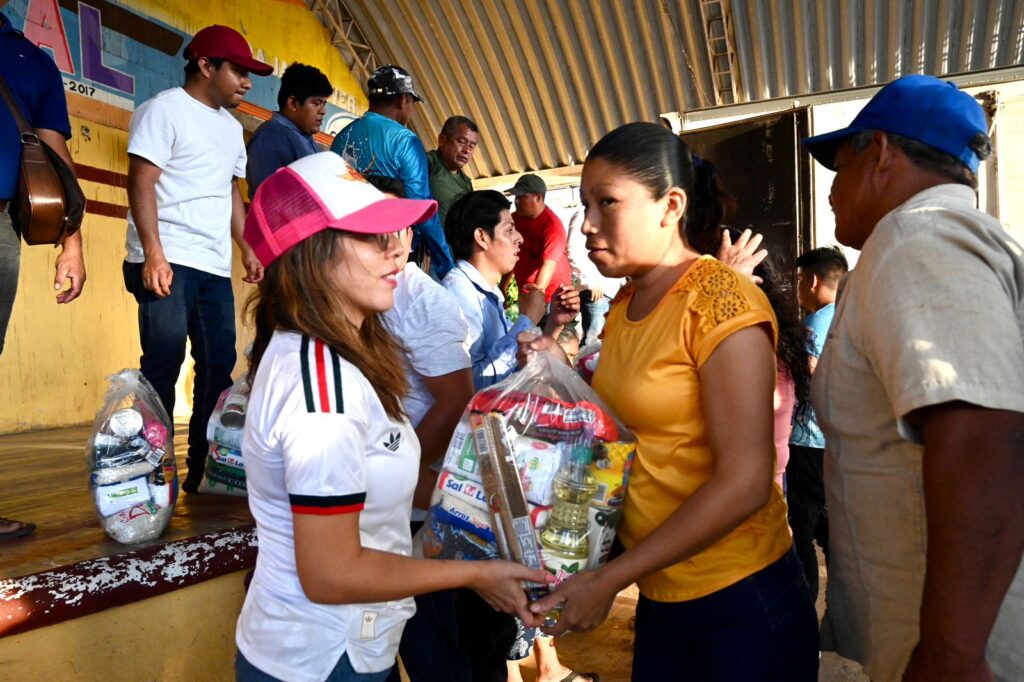 • En representación de la gobernadora Rocío Nahle García, la diputada Naomi Edith Gómez y el diputado Esteban Bautista encabezan la distribución de dos mil despensas en Pajapan, Tatahuicapan y Mecayapan.