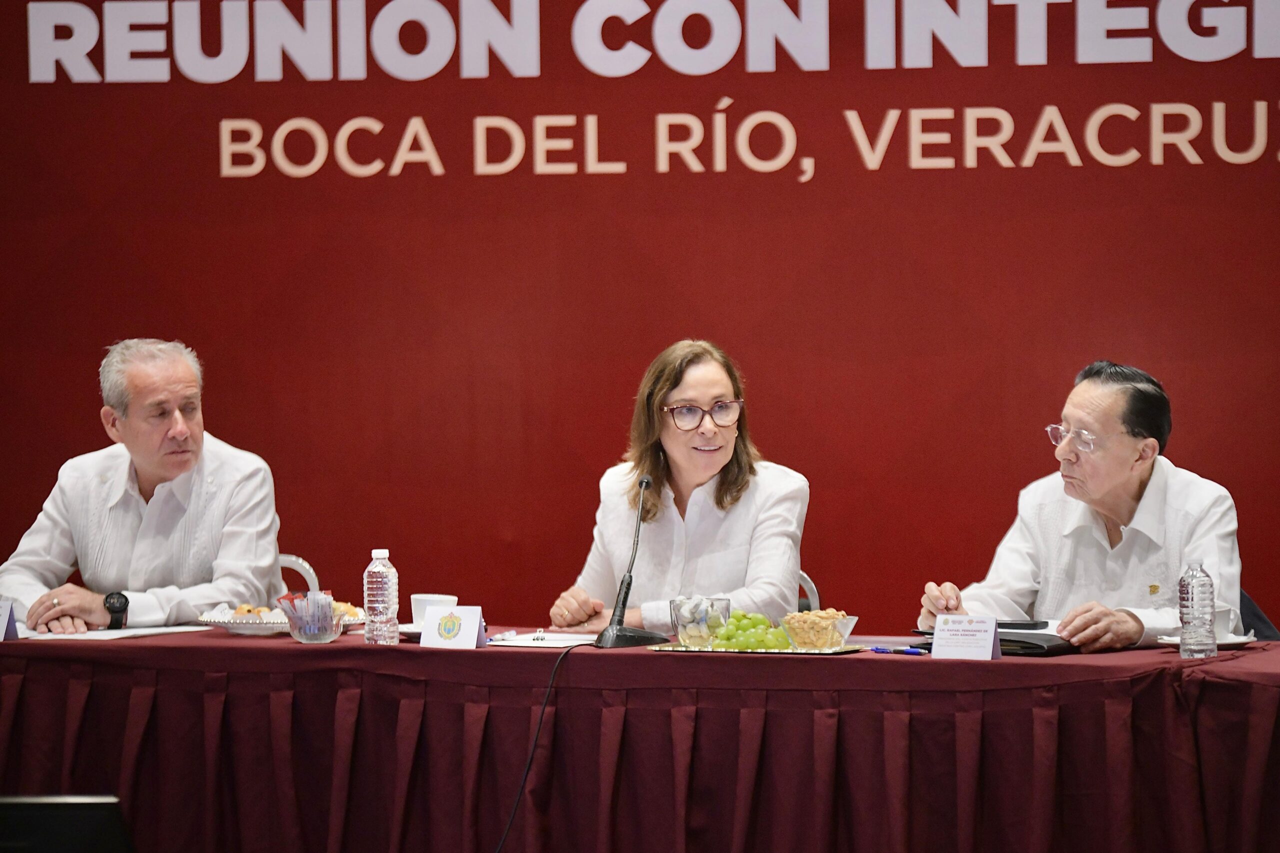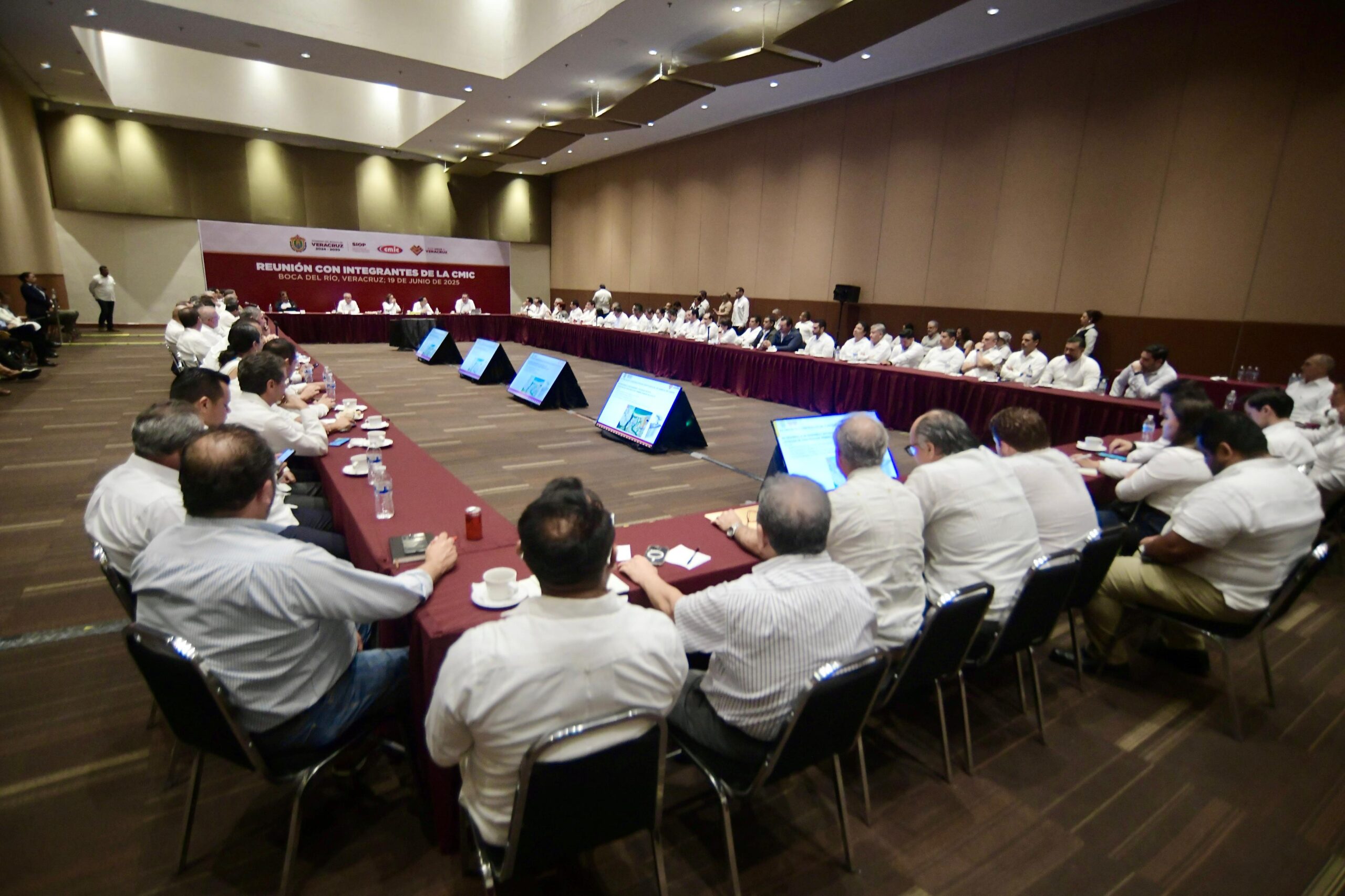 La gobernadora Rocío Nahle García sostuvo un encuentro con integrantes de la Cámara Mexicana de la Industria de la Construcción (CMIC), delegación centro, para presentar el paquete de obras públicas que serán ejecutadas con el objetivo de fortalecer la economía local, generar empleo y asegurar que la inversión se quede en Veracruz.
