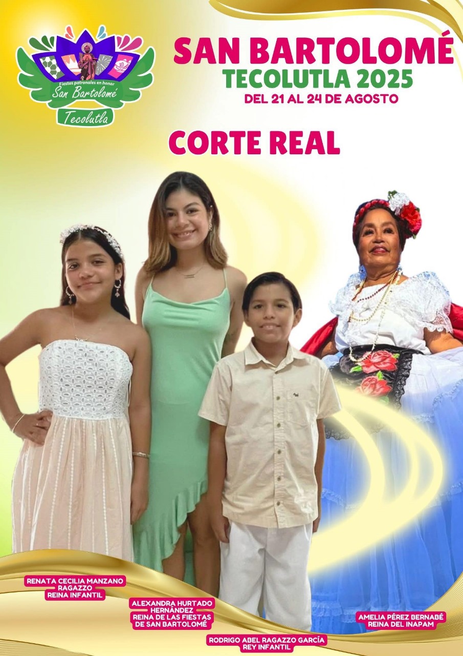 TECOLUTLA, VER.- El gobierno municipal que preside Gabriela Valdez Santes, presentó de manera oficial a través de las redes, a la corte real de las fiestas patronales en honor a San Bartolomé 2025, misma que se realizará del 21 al 24 de agosto y donde se espera la asistencia de miles de visitantes que podrán disfrutar de las diversas actividades programadas para esta celebración.