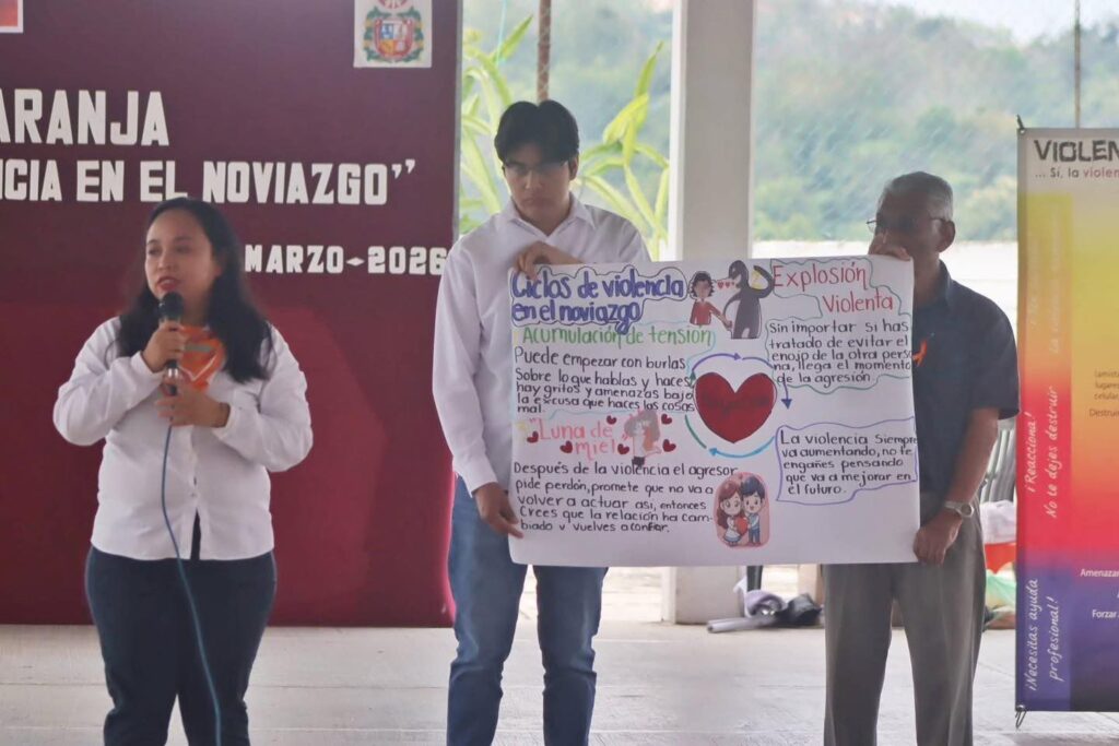 PAPANTLA, VER.- Como parte de la conmemoración del Día Naranja, se llevó a cabo una charla informativa sobre la prevención de la violencia en el noviazgo en la Escuela de Bachilleres Papanteca, dirigida a estudiantes de dicha institución.