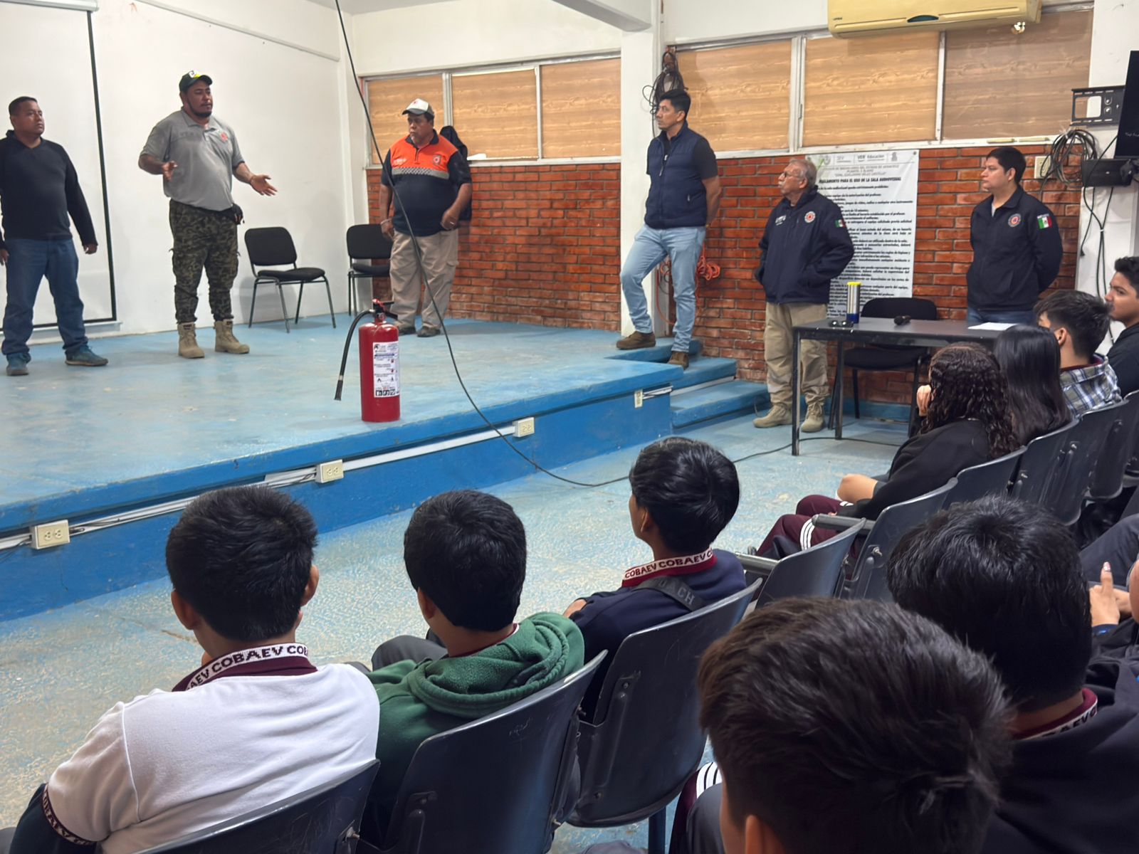 Durante la jornada inaugural, realizada en el COBAEV 05, se destacó la importancia de que las y los estudiantes cuenten con conocimientos básicos que les permitan mantener la calma y actuar de manera adecuada ante una contingencia, contribuyendo incluso a salvar vidas.