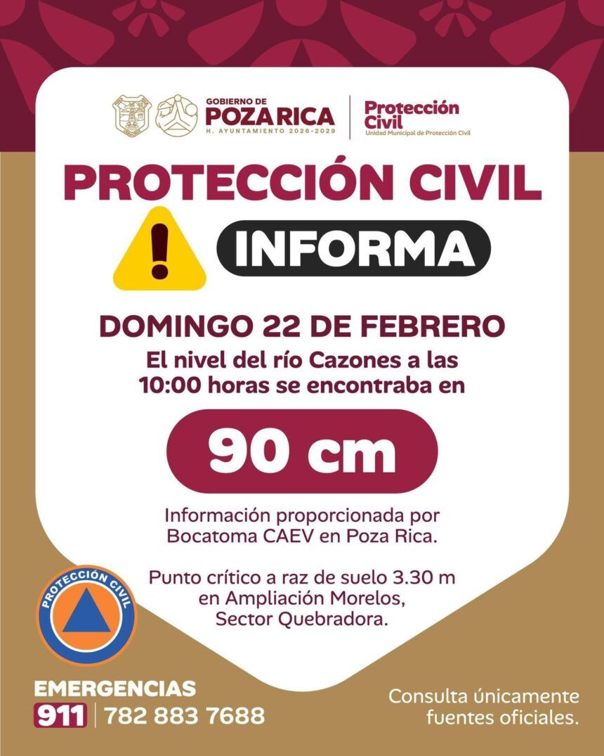 Nivel del Río Cazones a las 10:00 horas. Información proporcionada por Bocatoma CAEV.