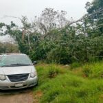 Las fuertes rachas de viento registradas durante el día provocaron la caída de árboles, láminas y cables, así como incendios en un predio y en palmeras, situaciones que fueron atendidas de manera oportuna por los cuerpos de emergencia.