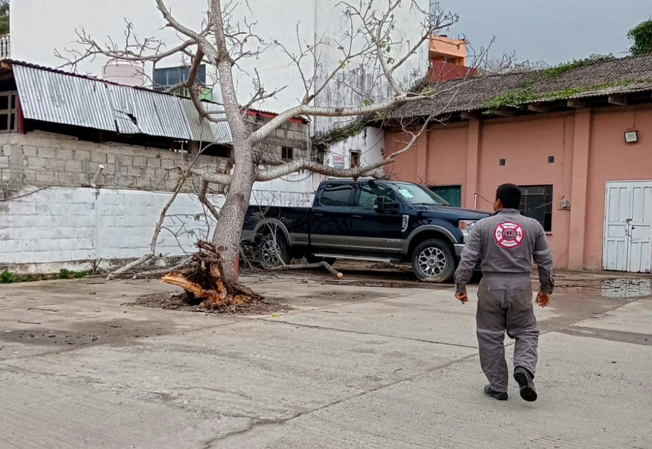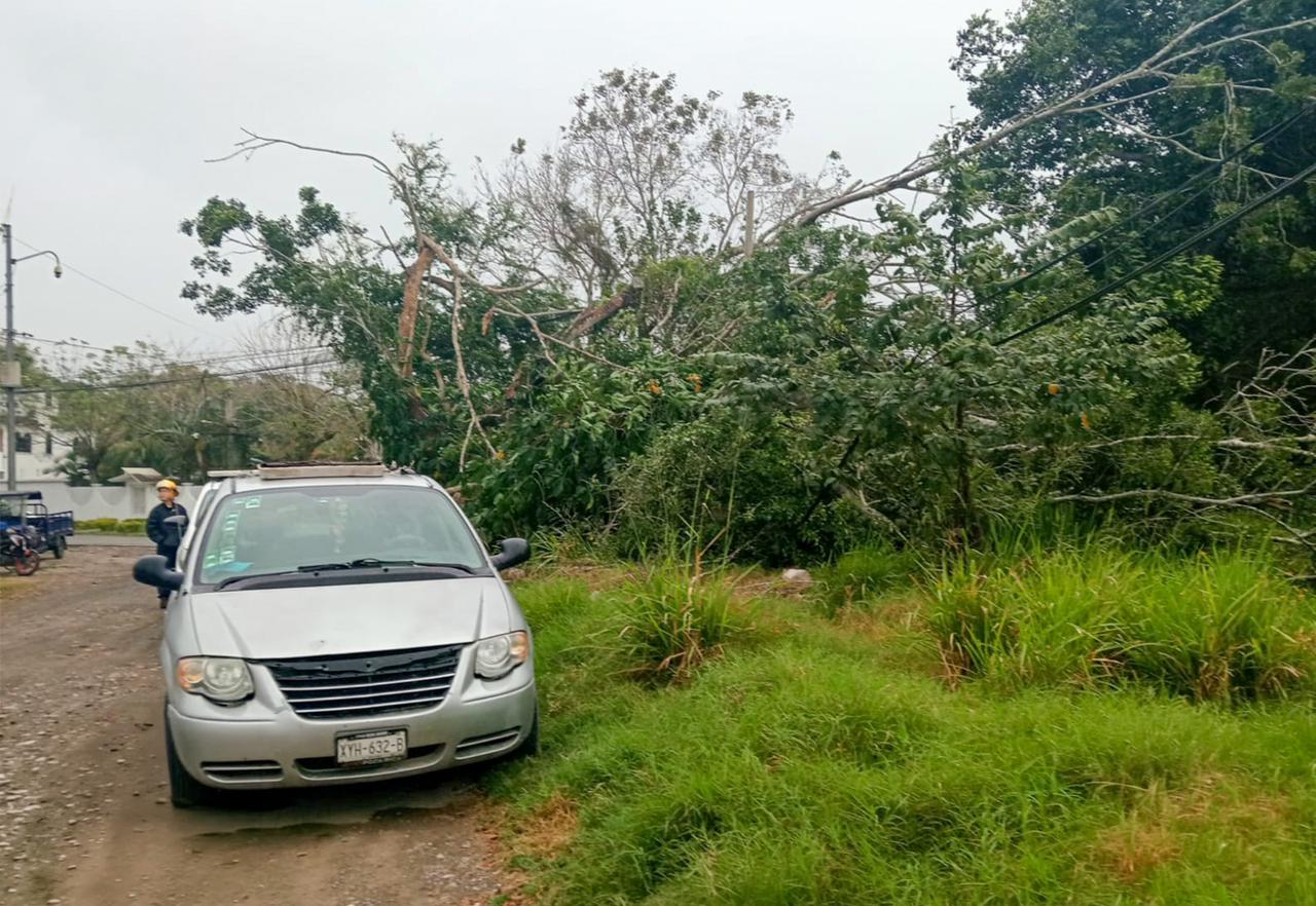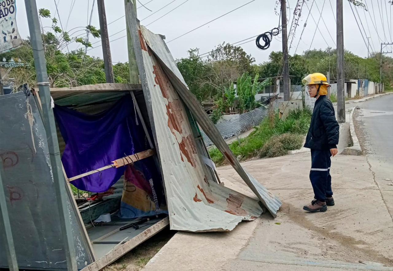 Las fuertes rachas de viento registradas durante el día provocaron la caída de árboles, láminas y cables, así como incendios en un predio y en palmeras, situaciones que fueron atendidas de manera oportuna por los cuerpos de emergencia.