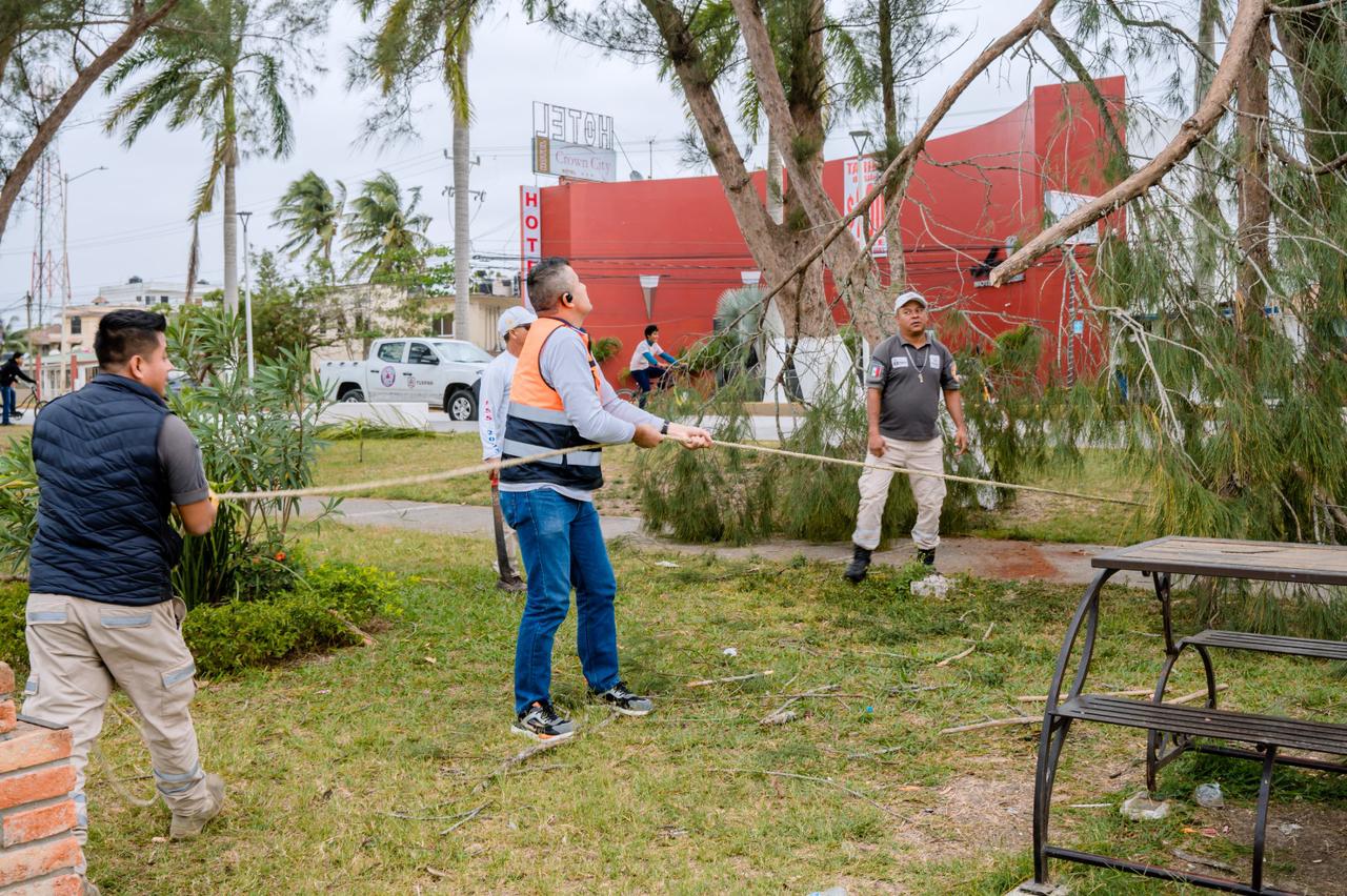 Tuxpan, Veracruz; 16 de marzo de 2026.– Derivado de los efectos del Frente Frío número 41, elementos de Protección Civil y del cuerpo de Bomberos de Tuxpan atendieron este lunes diversos reportes en distintos puntos del municipio, con el objetivo de salvaguardar la integridad de la población y mantener seguras las vialidades.