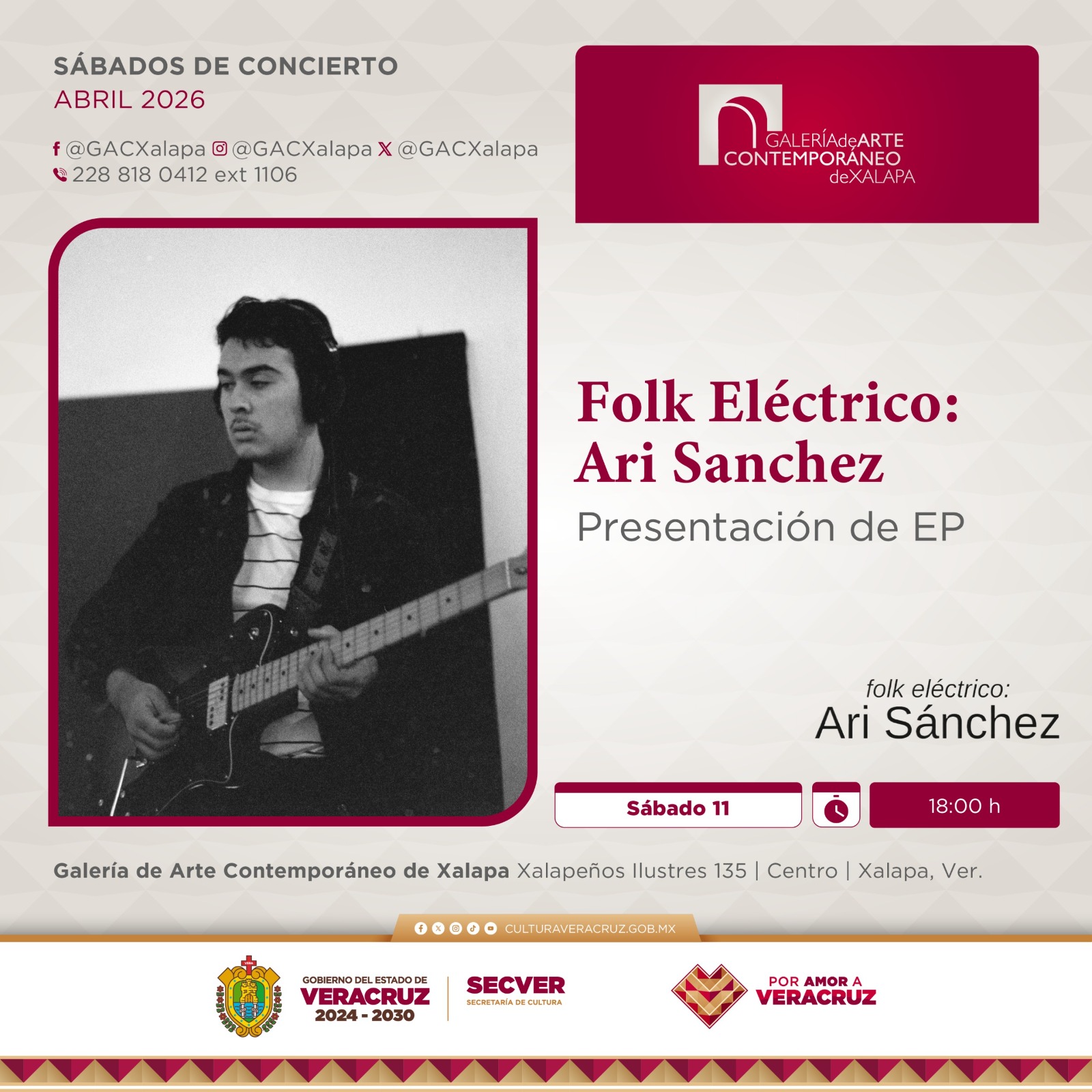 Xalapa, Ver., jueves 09 de abril de 2026.- Las secretarías de Cultura y de Educación de Veracruz, invitan a los sábados de concierto, los días 11 y 25 de abril a las 18:00 horas, en la Galería de Arte Contemporáneo de Xalapa. La entrada es gratuita.